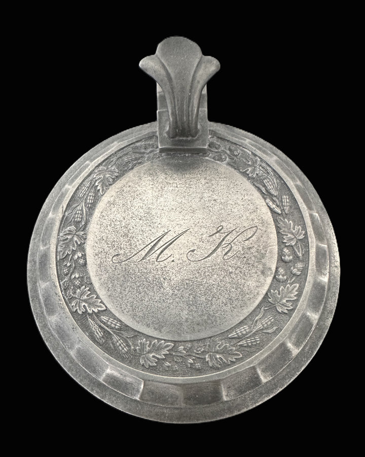 Pewter steins such as this one were popular in the German-speaking regions during the 19th century. They were often used in taverns or homes for serving beer and other beverages. The presence of a monogram suggests this piece may have been a special commission or a gift, enhancing its collectible value. The oak leaf motif symbolizes strength and endurance, while the acorns represent potential and growth, making this a deeply symbolic design.