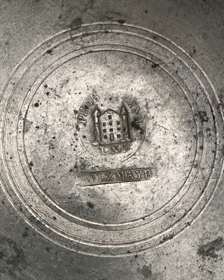 This piece was produced in Germany, likely in the mid-to-late 19th century. Its hallmark and detailed craftsmanship confirm its origins with Holzmayr, a reputable pewter producer known for its high-quality metalwork.