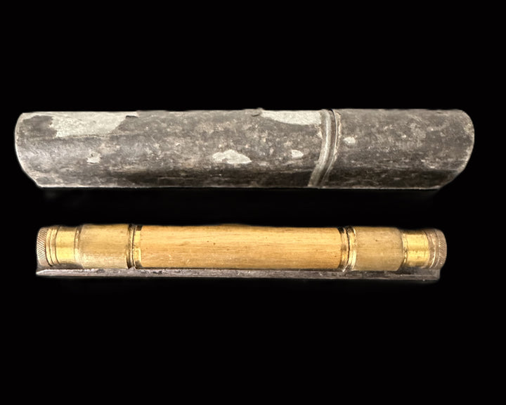 - Iron case: Shows signs of oxidation and wear, expected for an early engineering tool. Hinges remain functional, allowing for safe storage and transport.