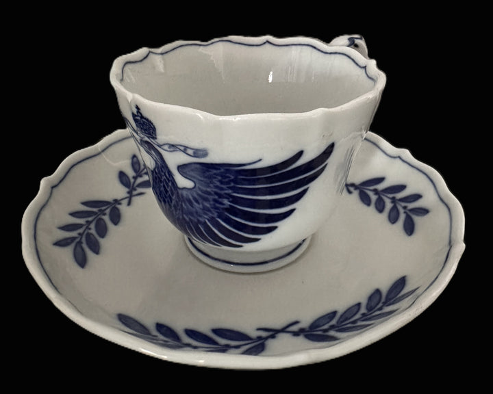 Antique Meissen Porcelain Cup and Saucer with Imperial Eagle Motif
