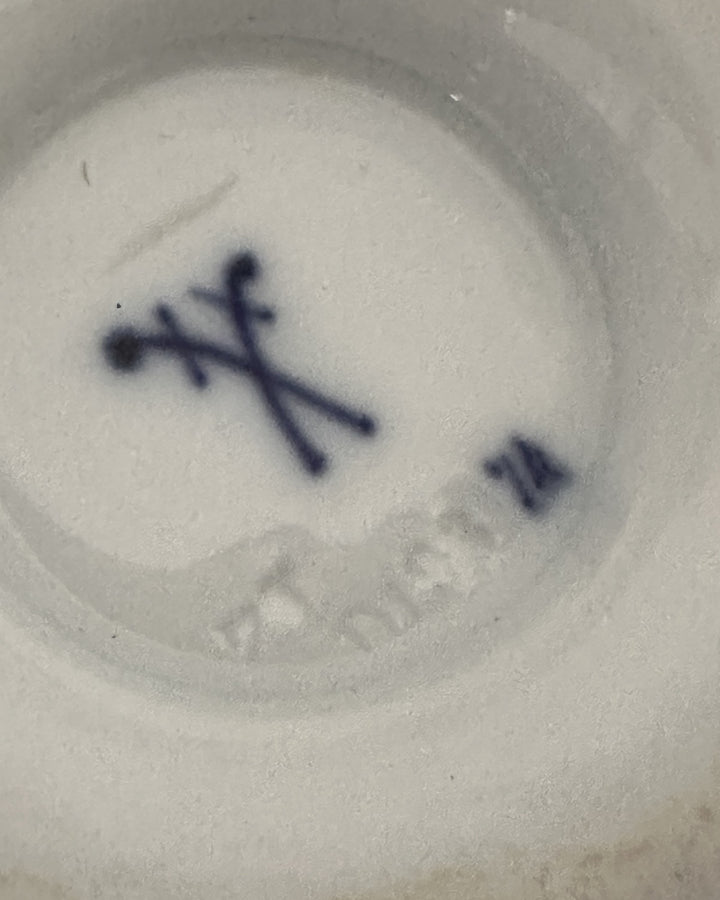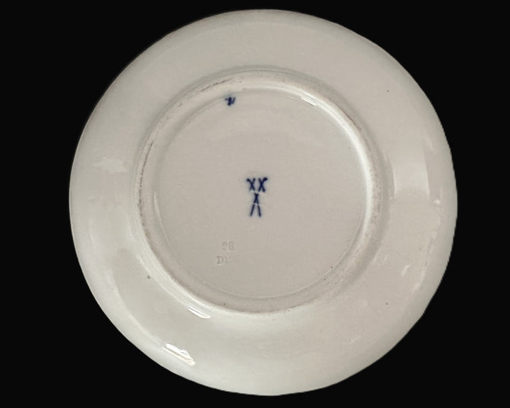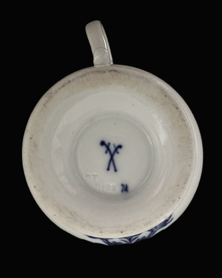 - Markings: The crossed swords mark, clearly visible on the base of both the cup and saucer, confirms its origins as a genuine Meissen piece. Accompanying numbers on the underside may provide further insight into its production date, which experts can assist in identifying.