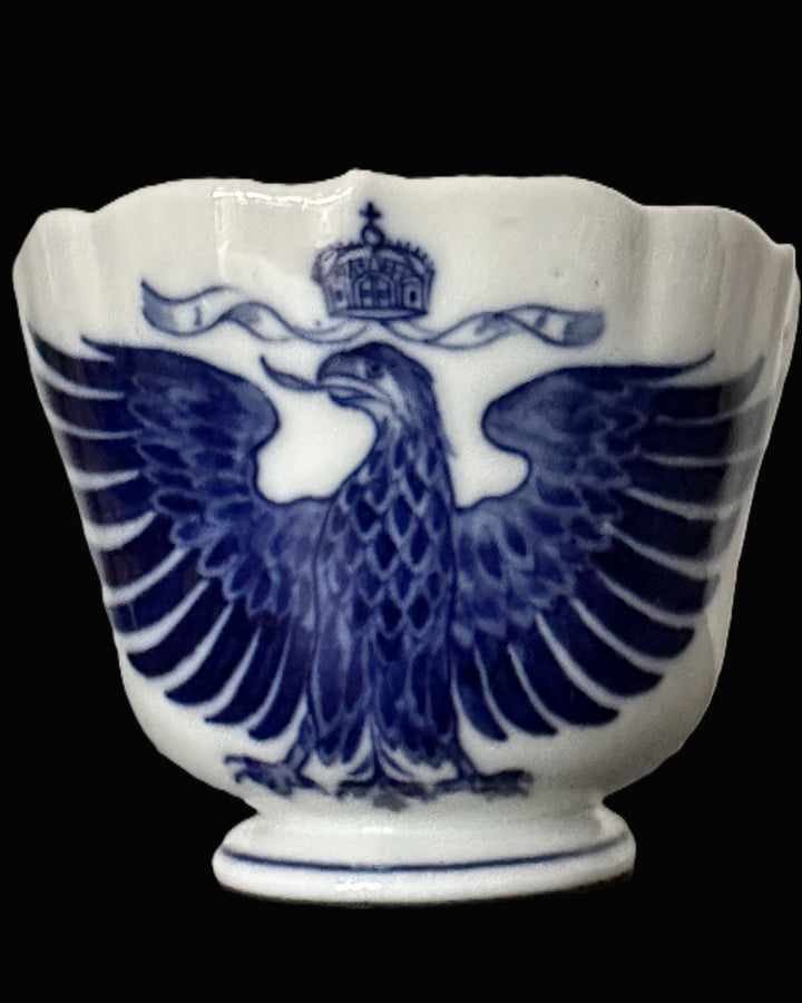 The Meissen Porcelain Manufactory revolutionized European decorative arts with the introduction of hard-paste porcelain. This cup and saucer reflect the legacy of innovation and the tradition of hand-painted designs that made Meissen the gold standard in porcelain production. The Imperial Eagle motif ties the piece to the rich history of 18th and 19th-century German nobility, a symbol often associated with imperial power and prestige.