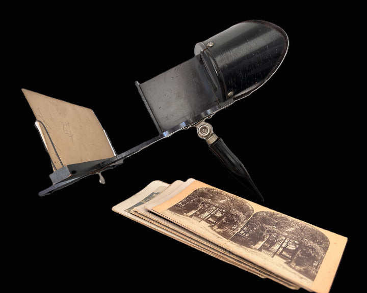 Historical Relevance: Stereoscopes were a significant cultural innovation in the 19th century, widely used for entertainment, education, and even military training. They offered a way for people to experience far-off places and events without leaving their homes. This particular set would have been a prized possession, likely enjoyed by families or displayed as a statement piece in a parlor or study.