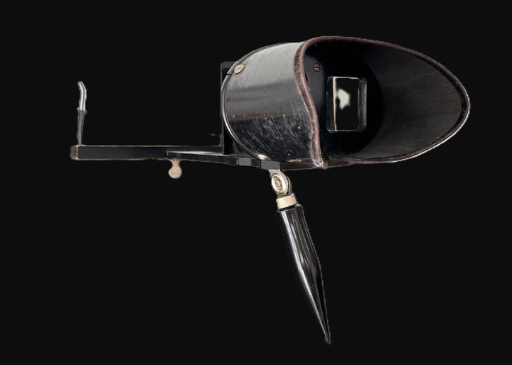 Material: Crafted primarily from wood and metal, with a rich, dark finish that adds to its antique charm. The viewer's hood is lined with a soft material, likely leather or felt, to provide comfort during use.