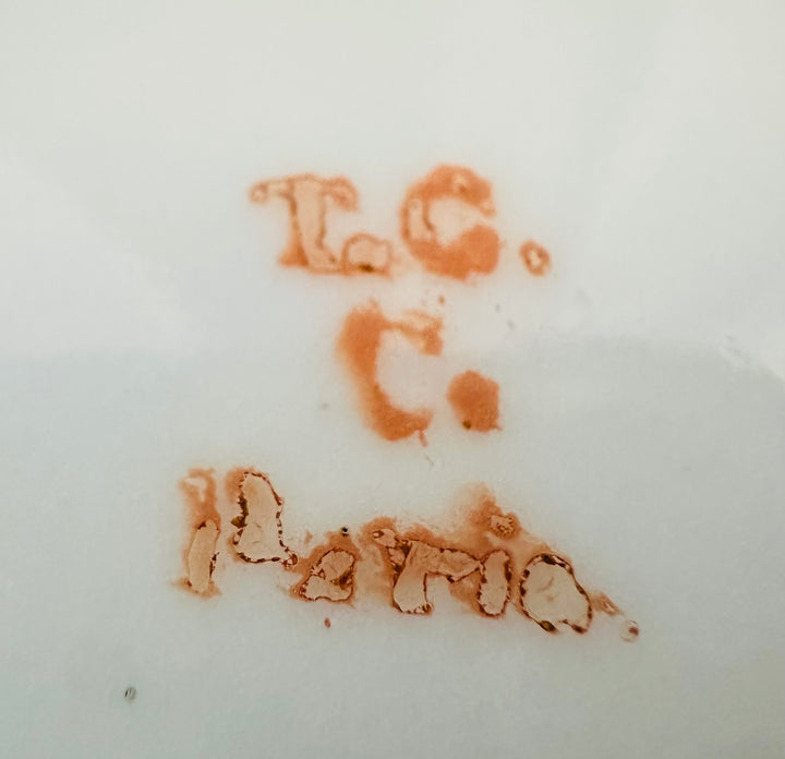 The reverse bears the distinctive "T.C.C. Paris" maker’s mark in orange enamel. Though little documentation exists on the specific factory, it is consistent with the practices of smaller Parisian workshops that produced high-quality porcelain for both domestic and international markets during this time.