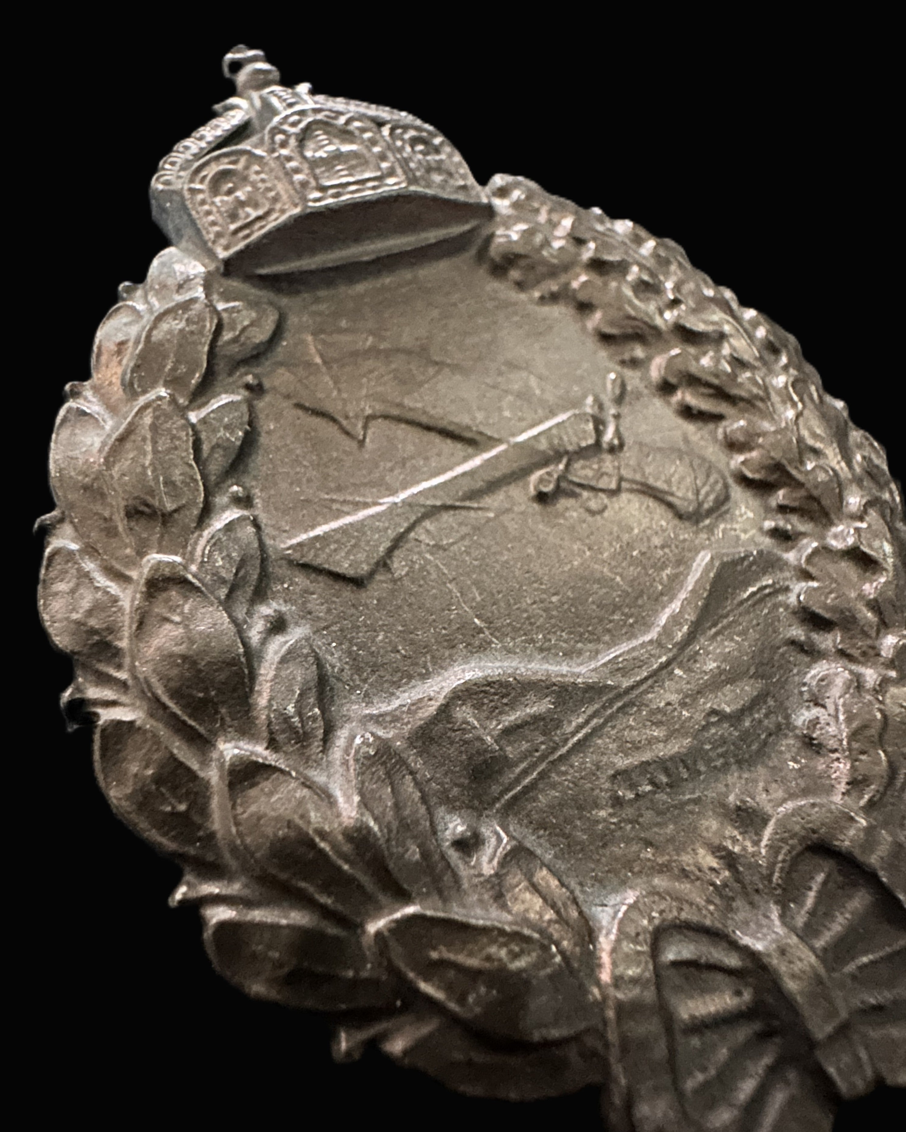 The detailed crown of St. Stephen symbolizes imperial authority, while the laurel and oak wreath conveys triumph and steadfastness. The aircraft in relief captures the fragile beauty of early aviation, when wooden biplanes defined modern warfare’s new frontier.