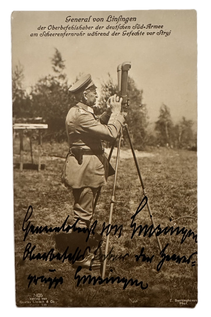 SEO Keywords: WWI German general, Alexander von Linsingen, Eastern Front victories, historical military postcards, autographed WWI collectibles
