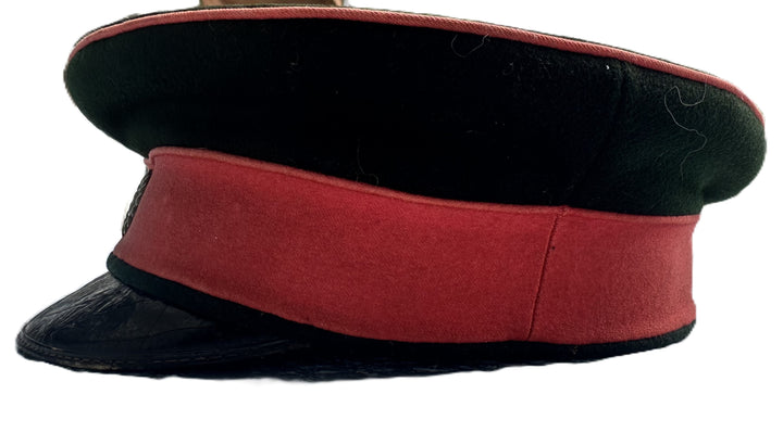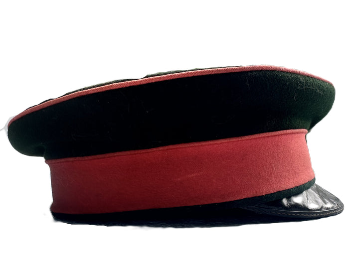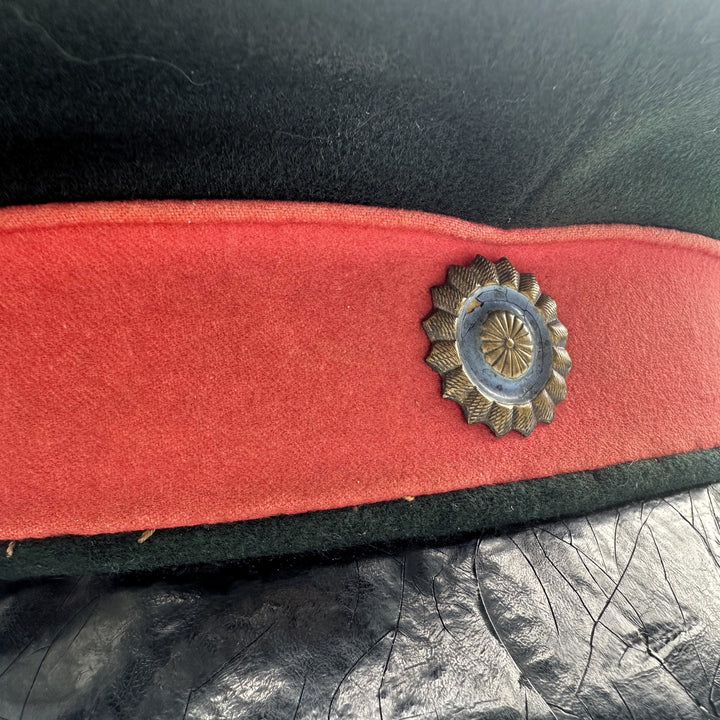 Color Scheme: The cap features a dark green or black wool top, paired with a distinct red band that wraps around the base of the crown, which was typical for Bavarian military officers. This color combination is reflective of the Chevauleger regiments.