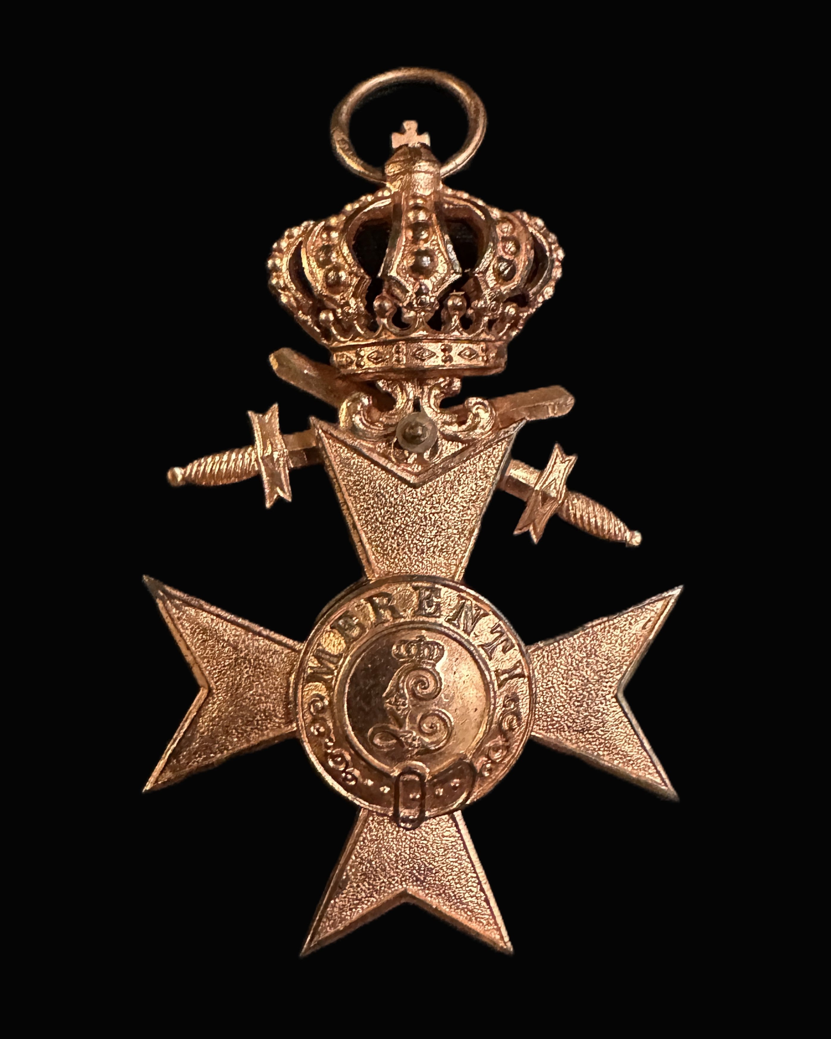 This offering presents a superb example of the Bavarian Militär-Verdienstkreuz (Military Merit Cross) 3rd Class with Crown and Swords, complete with its original case of issue by the renowned Munich firm Deschler & Sohn. This decoration, instituted in 1866 by King Ludwig II of Bavaria, was the kingdom’s most frequently awarded order for officers, NCOs, and enlisted men for bravery and merit in wartime.