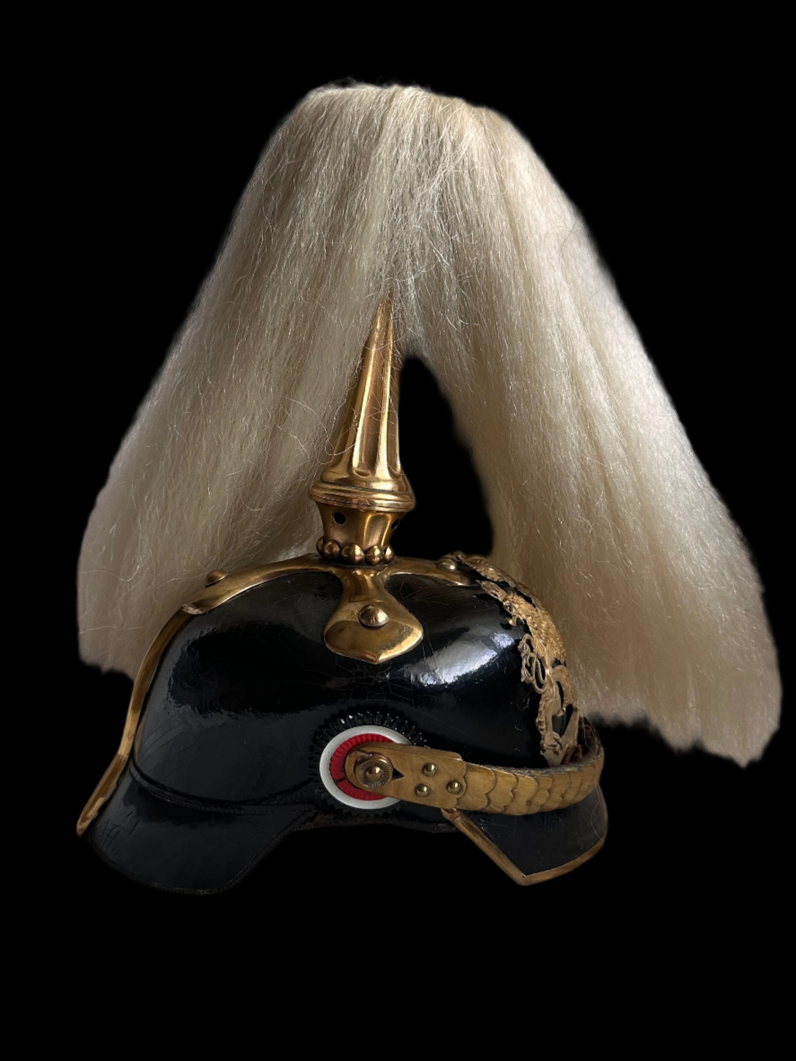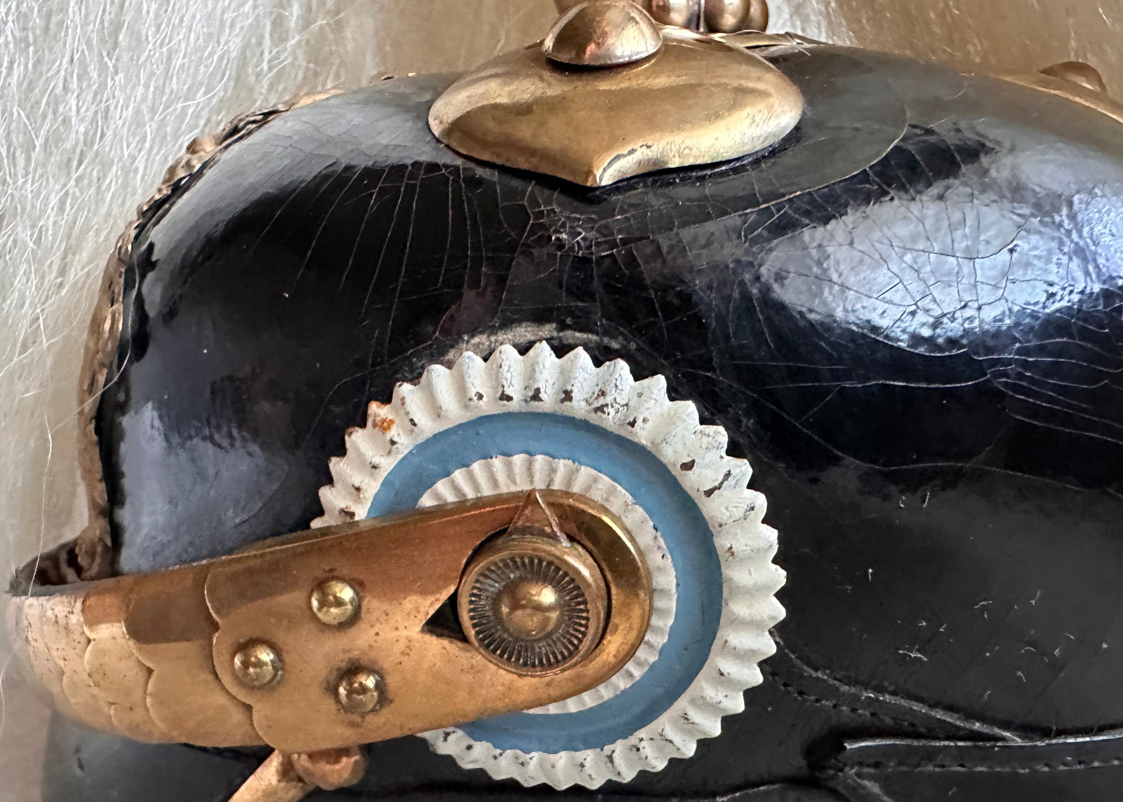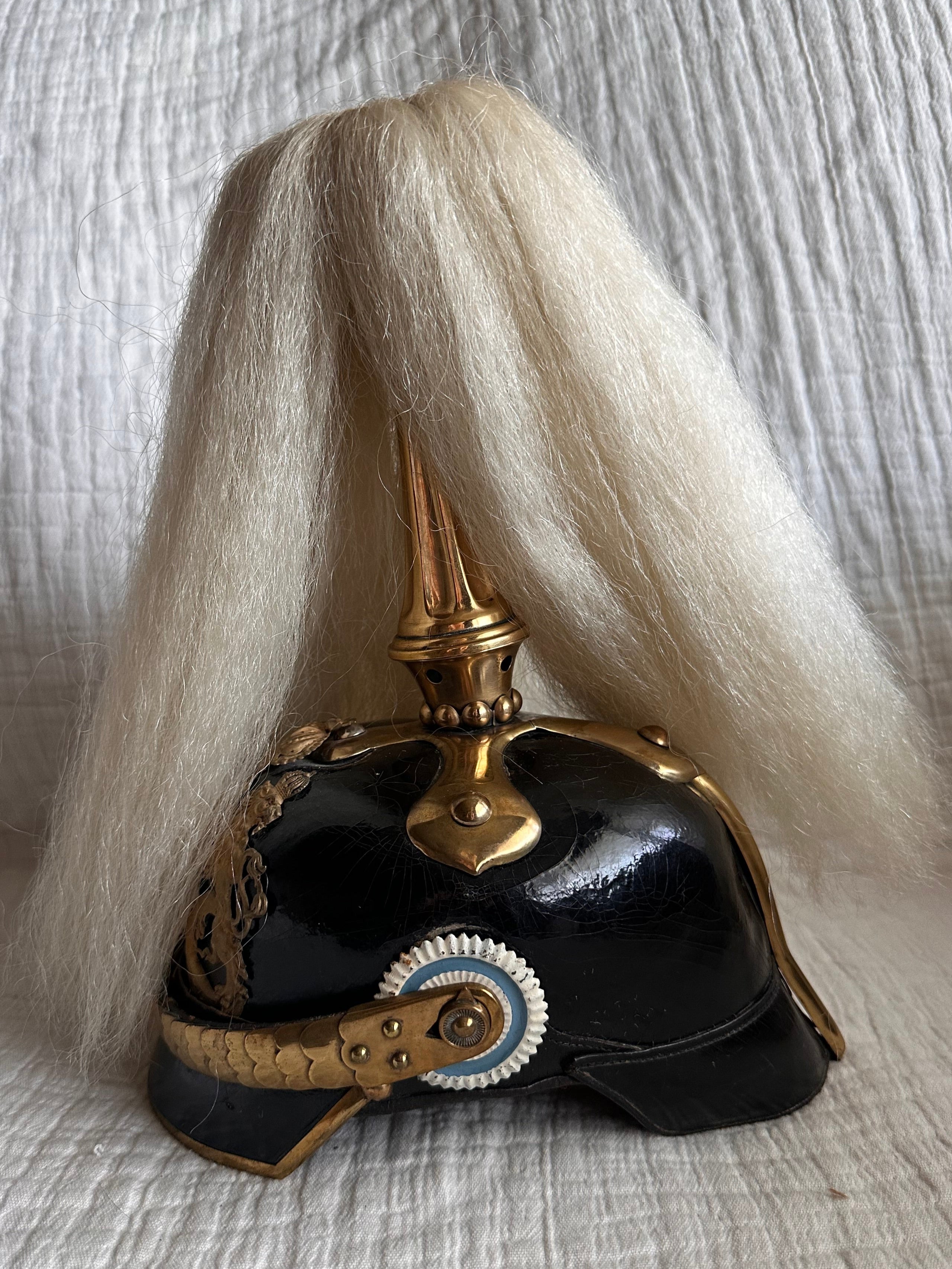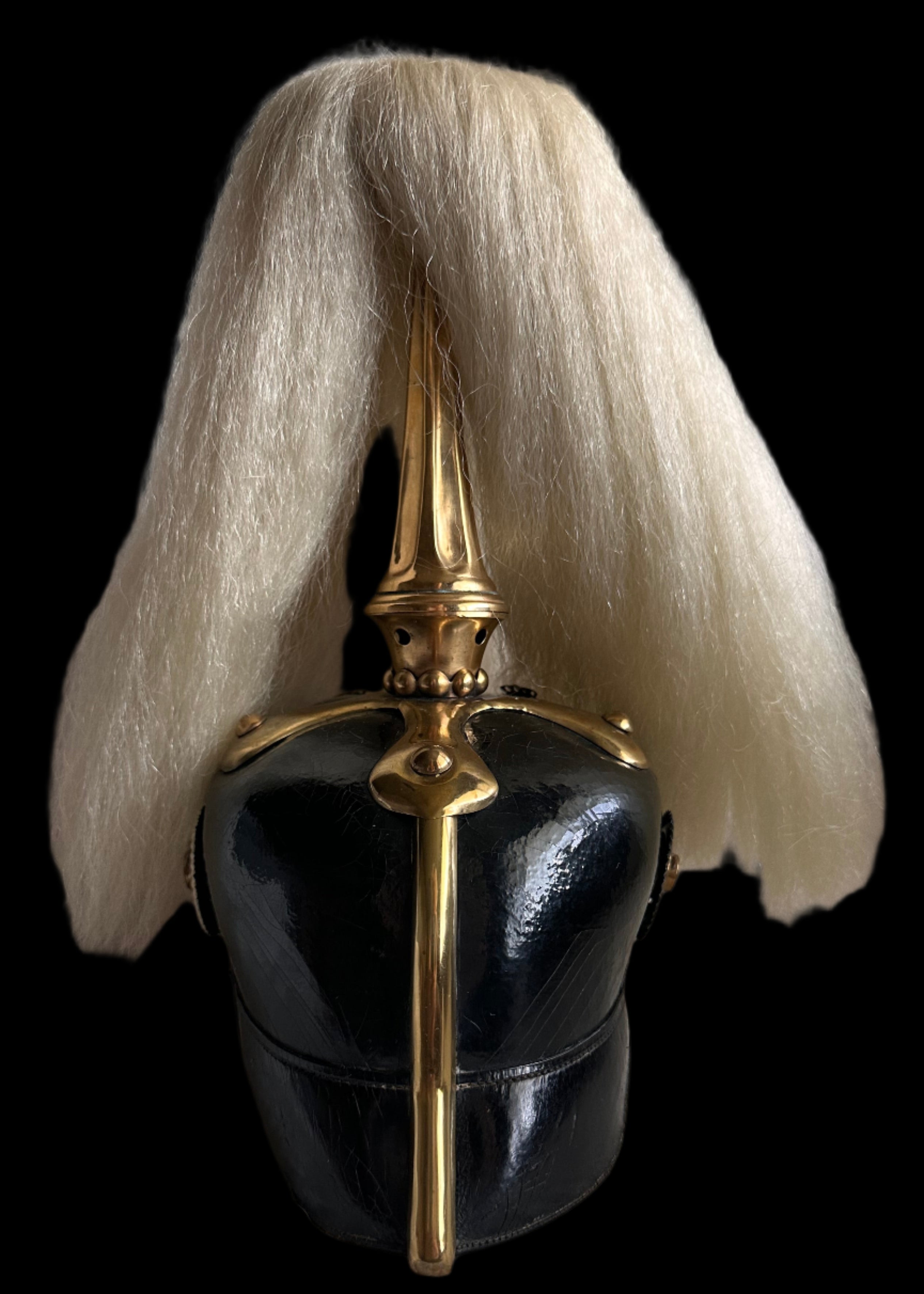 The presence of the white parade plume suggests court duty, formal events, or public parades. Officers of these regiments would order their helmets privately from tailors or helmet makers (e.g., Steinmetz, München), often opting for ornate details like pierced spike bases and extra-high-quality liners.