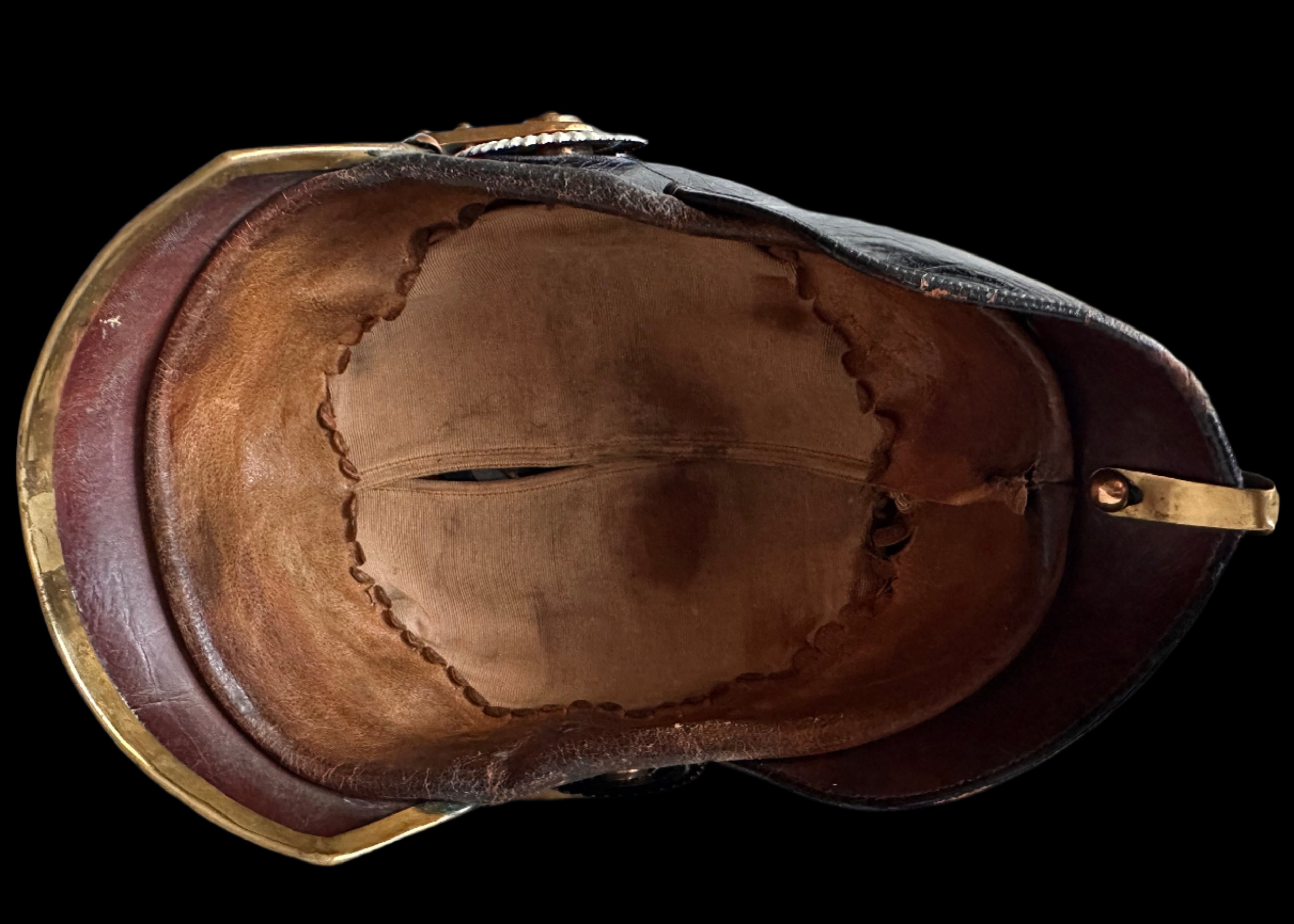 - Liner: Deluxe officer-grade configuration — light brown leather sweatband paired with a cream silk headliner