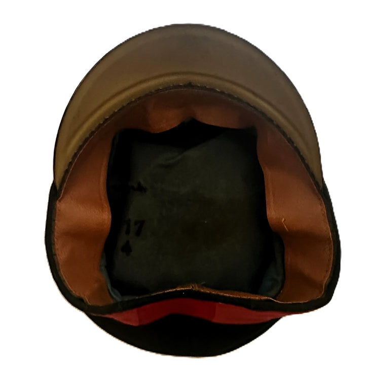 - Interior: Inside, the cap boasts a fine leather sweatband and a silk liner. While the liner shows signs of natural wear, typical for items of this age, it remains mostly intact, with only minor fraying around the edges. The maker’s stamp is no longer visible due to wear, but the cap retains its structure.