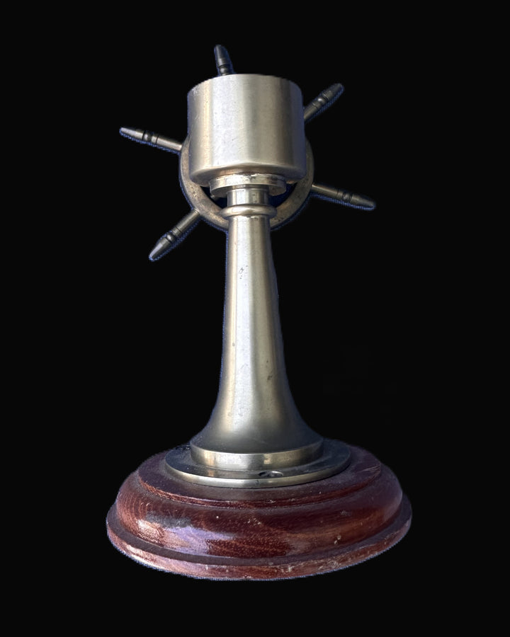 While not a period naval instrument, this compass pays tribute to the maritime heritage of ship navigation and seafaring culture. It resembles commemorative or presentation items often gifted to naval officers or used in mid-20th century maritime-themed decor.