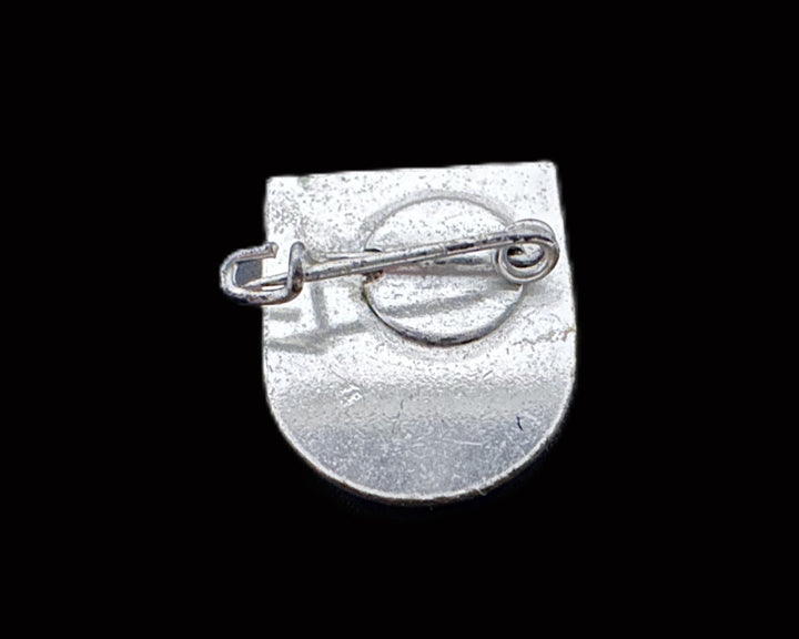 This pin remains in excellent vintage condition, with the enamel intact and minimal wear on the reverse side. The safety clasp functions properly.