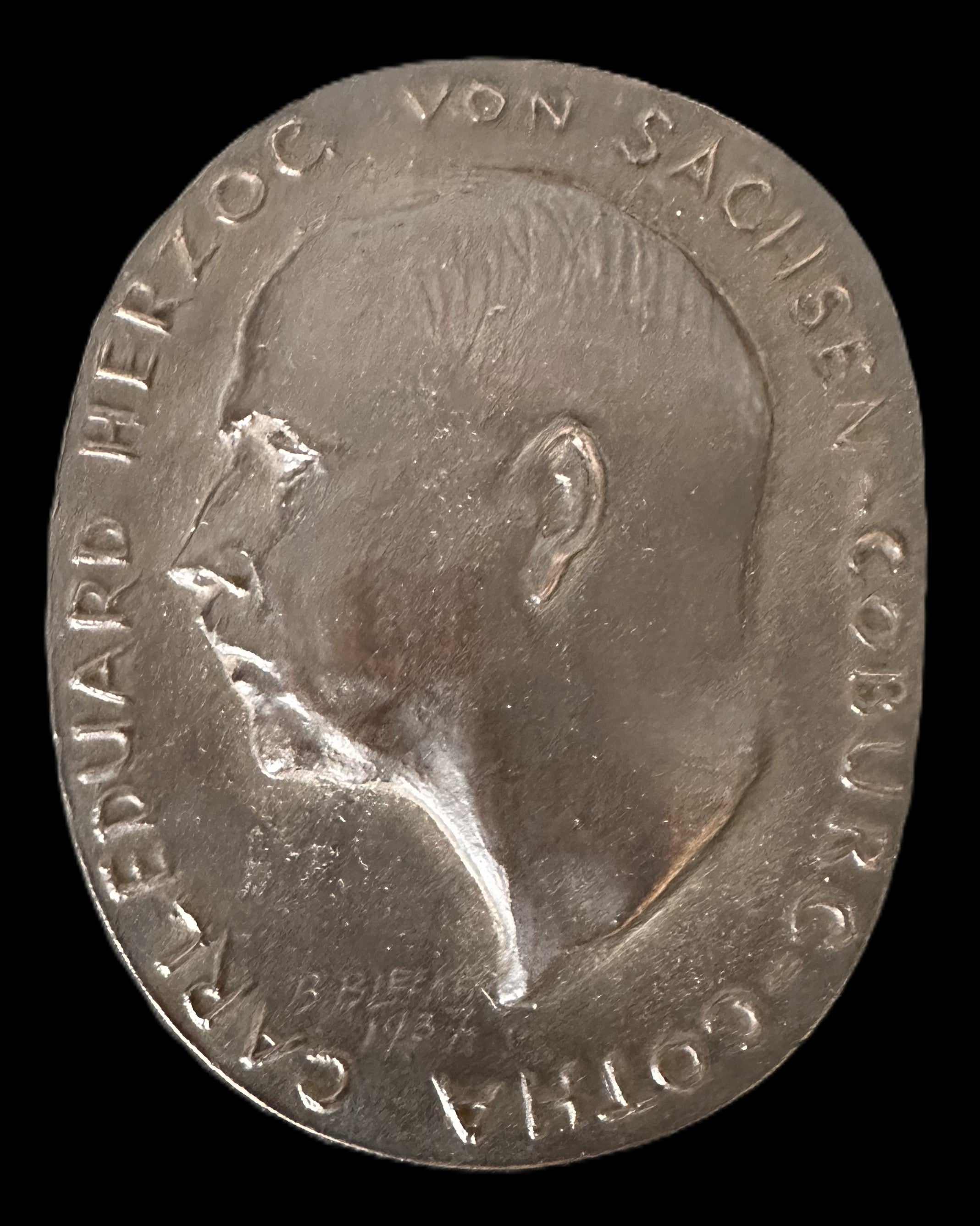 This handsome bronze portrait plaque depicts Carl Eduard, Duke of Saxe-Coburg and Gotha (1884–1954), last reigning sovereign of that duchy and a grandson of Queen Victoria. The finely executed portrait, signed “B. Bleeker 1937,” is the work of Bernhard Bleeker (1881–1968), one of Germany’s most respected sculptors and medal artists during the first half of the 20th century.