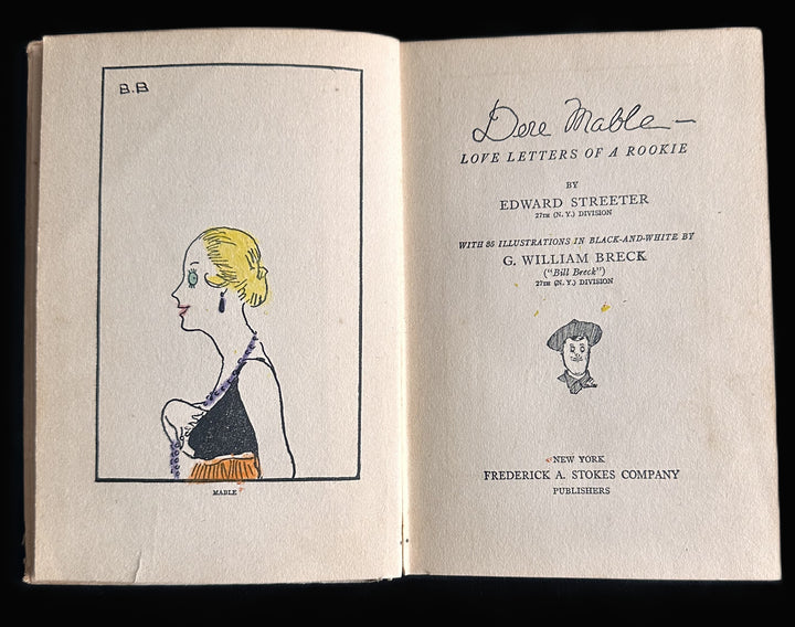 Original World War I-era illustrated humor volume titled Dere Mable: Love Letters of a Rookie, written by Edward Streeter of the 27th (New York) Division and published in New York by the Frederick A. Stokes Company. This book is a classic piece of American First World War soldier literature, presenting fictionalized “phonetic” letters home from an American doughboy, written in exaggerated vernacular to capture the voice, humor, and frustrations of a newly arrived U.S. soldier overseas.