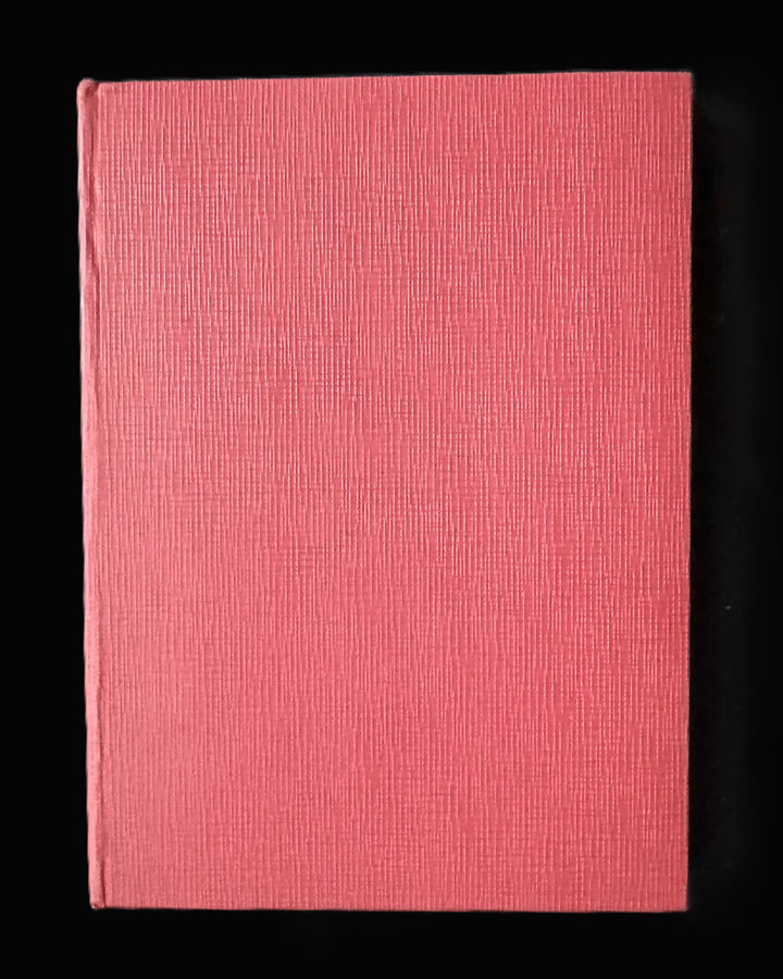 This example is bound in its original red cloth boards with vertically ribbed texture. The front cover bears the gilt-stamped inscription: