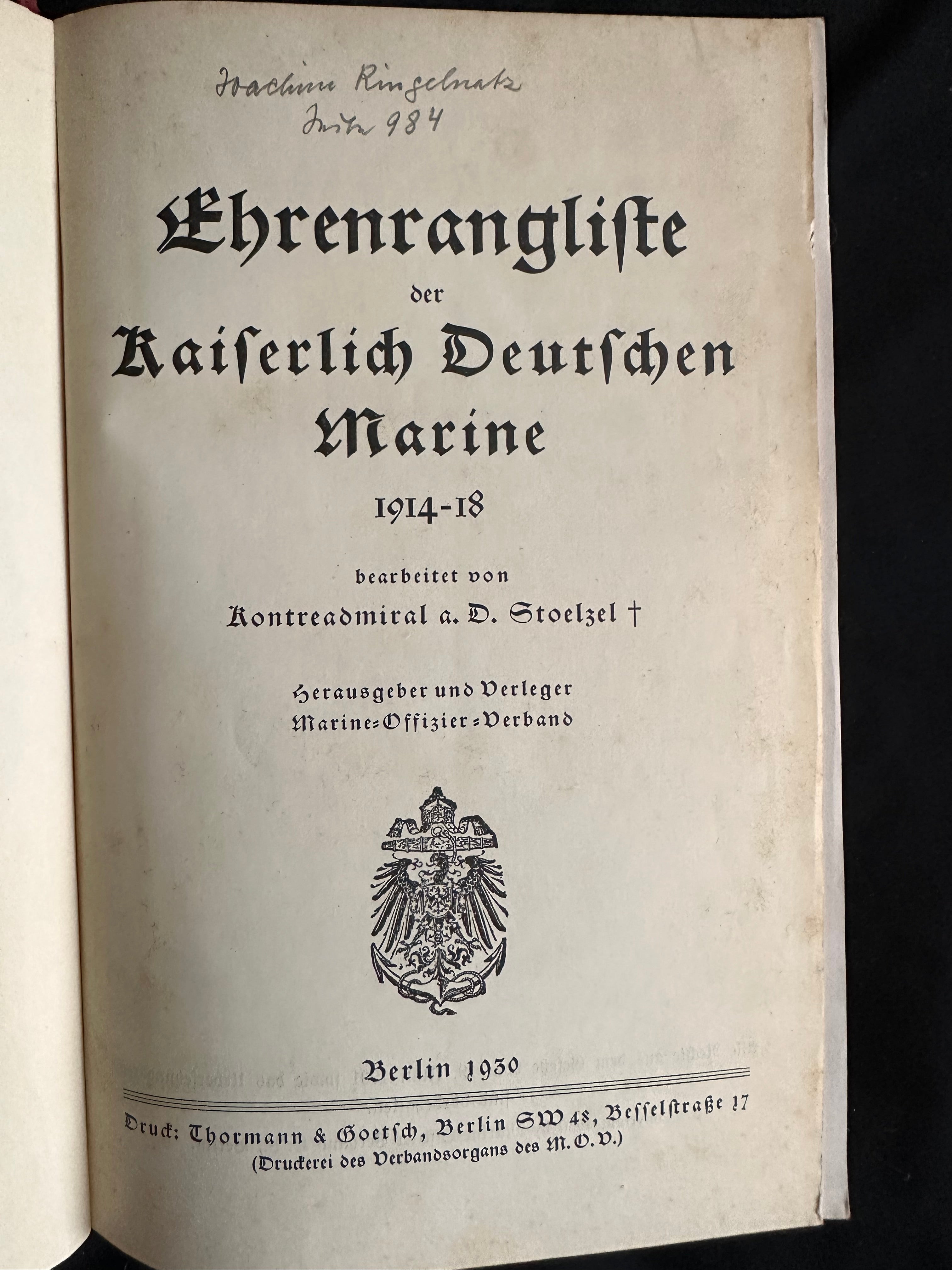 Ehrenrangliste der Kaiserlich Deutschen Marine 1914–1918, Berlin 1930