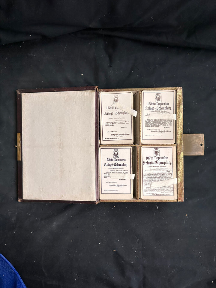 For collectors, this is a highly evocative piece combining original wartime ephemera with a purpose-made presentation case. Complete Franco-Prussian War despatch sets are uncommon, and examples retaining multiple original cards in their period case are particularly desirable. This item appeals strongly to advanced collectors of Prussian militaria, Iron Cross history, and Franco-Prussian War material, as well as those interested in wartime media and communication.