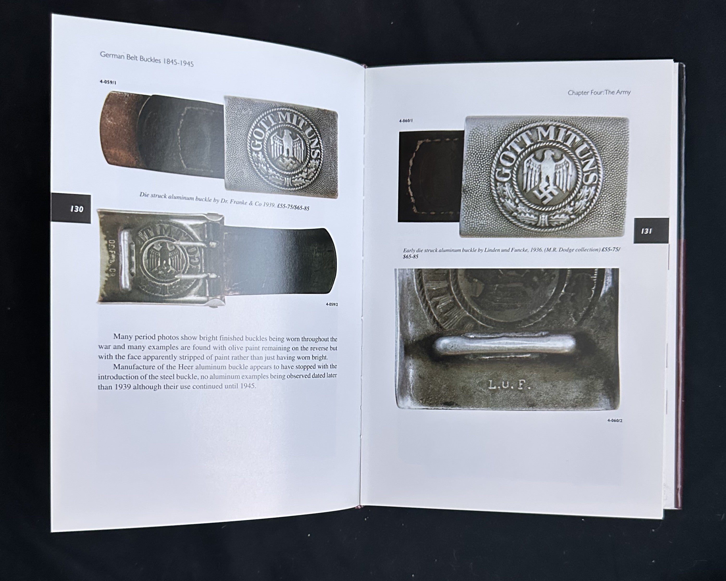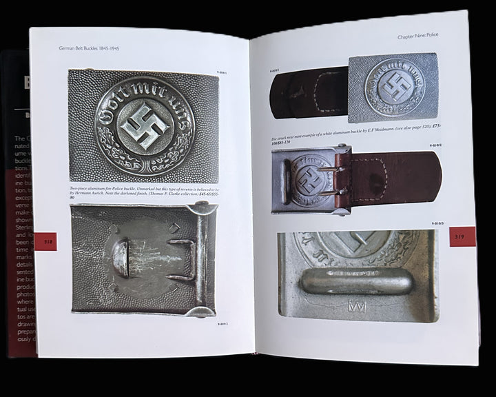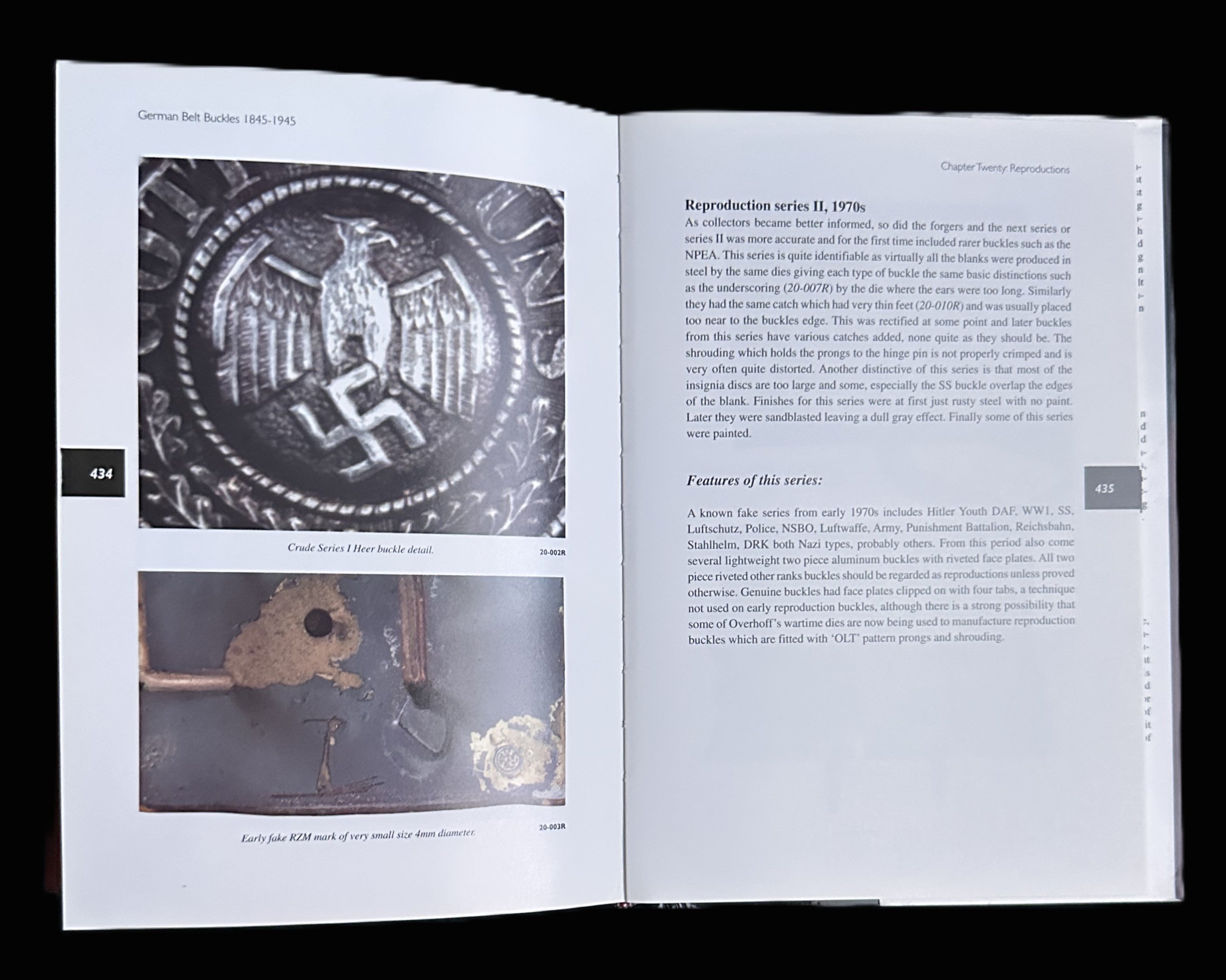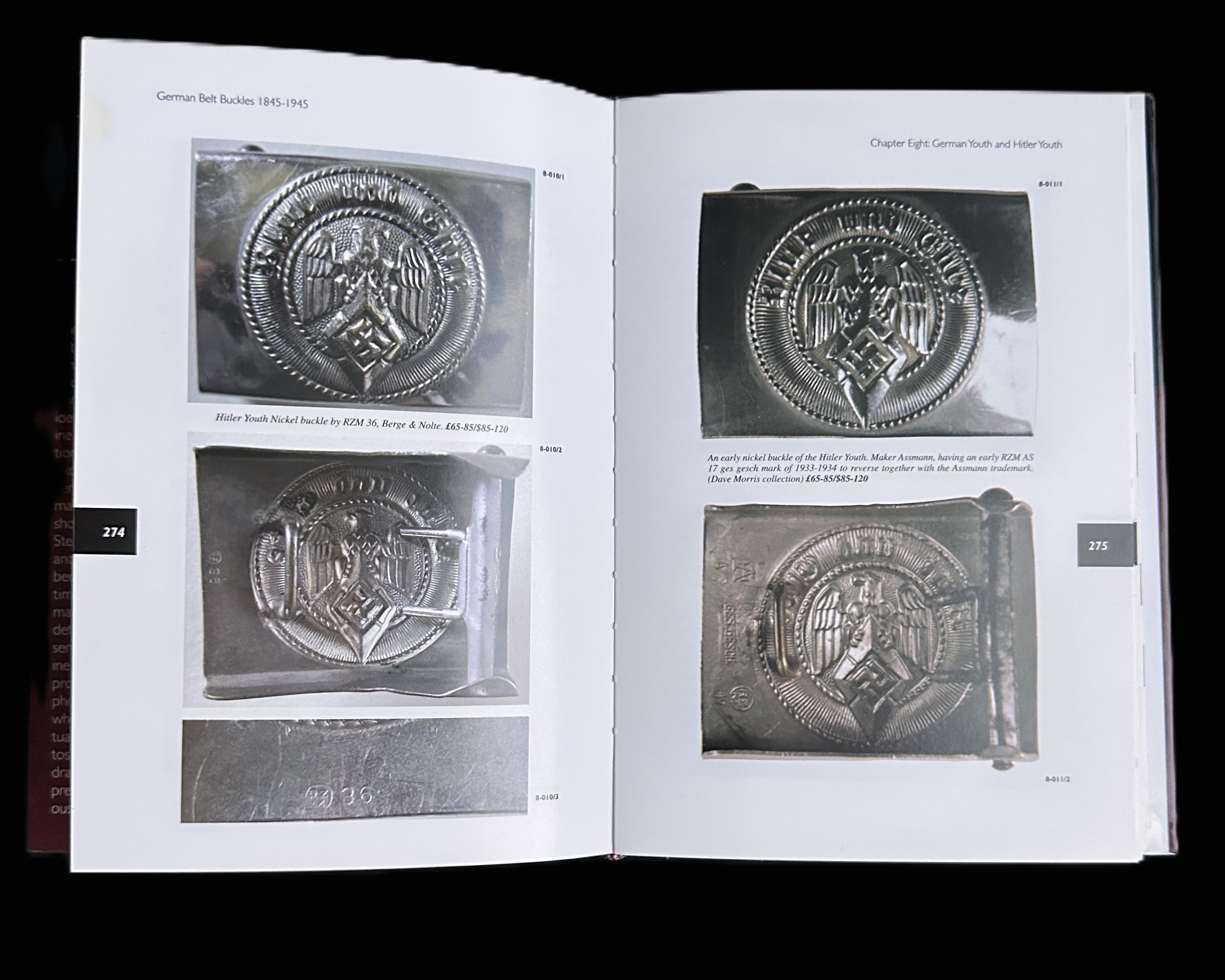 Nash’s treatment extends well beyond the Army buckles into specialized formations: Luftwaffe, RAD, TENO, OT, SS (nickel, aluminum, steel, and RZM-marked variants), Hitler Youth, Police, civil organizations, naval service, Red Cross, veterans’ associations, Reichsbahnschutz, and numerous smaller entities rarely documented in other volumes. The chapters on RZM codes and manufacturer identification remain among the most valuable tools for collectors evaluating authenticity. The book’s photographic plates are crisp, with reverse images, prong construction, die characteristics, and wear patterns documented in high resolution. The inclusion of design drawings, construction comparisons, and period regulations greatly strengthens the collector’s analytical framework.