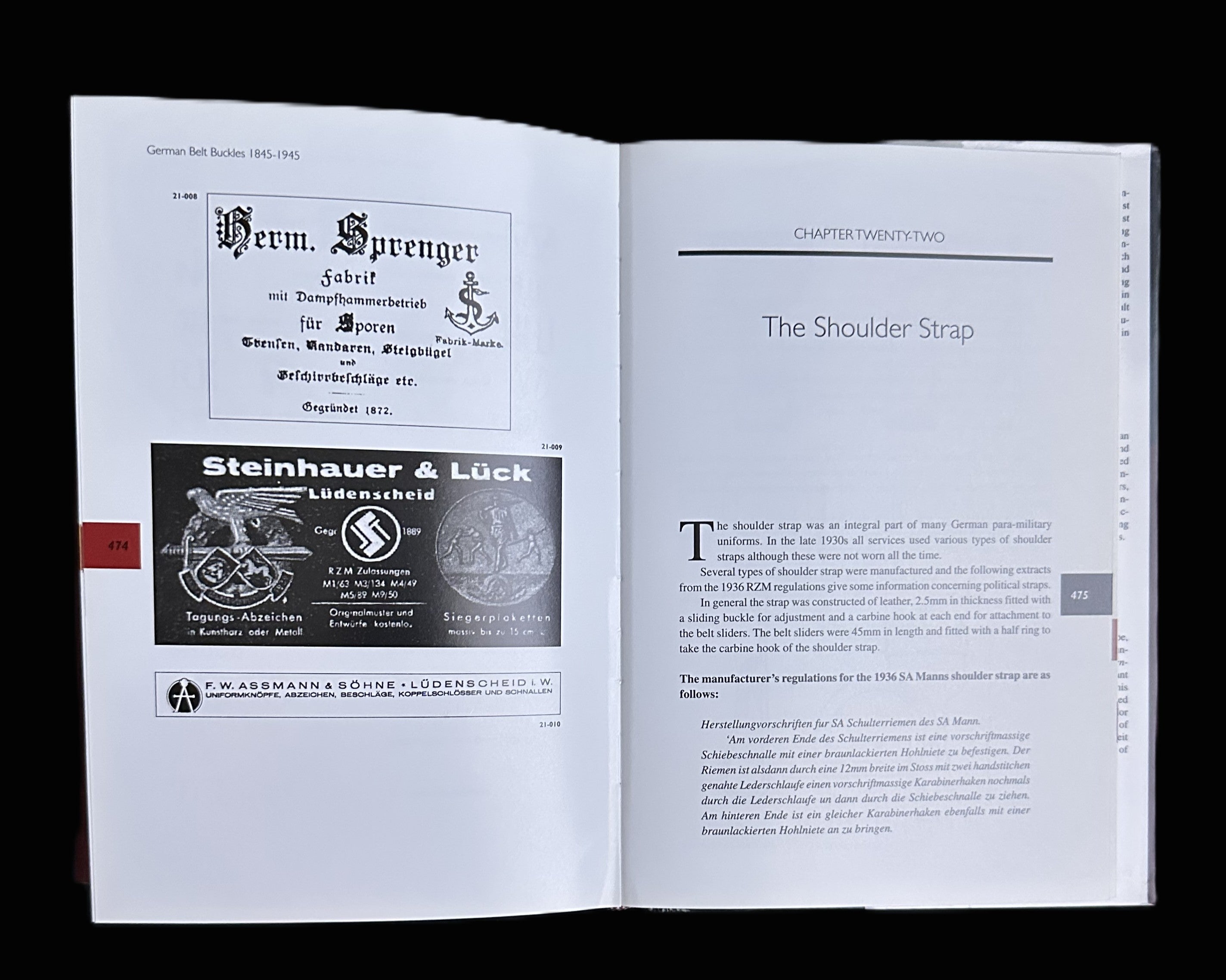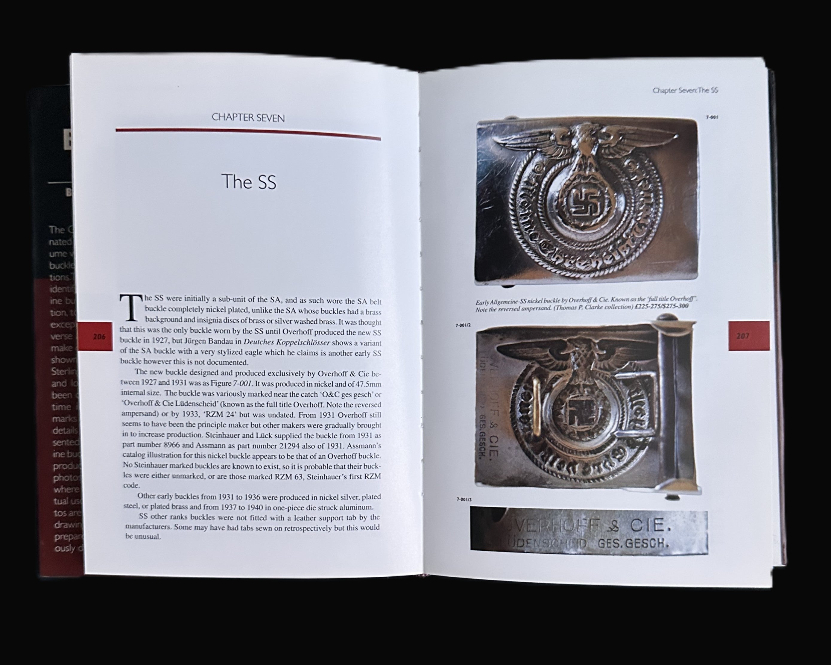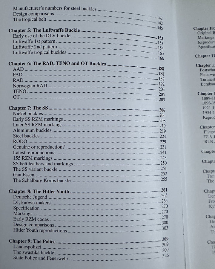 Nash’s treatment extends well beyond the Army buckles into specialized formations: Luftwaffe, RAD, TENO, OT, SS (nickel, aluminum, steel, and RZM-marked variants), Hitler Youth, Police, civil organizations, naval service, Red Cross, veterans’ associations, Reichsbahnschutz, and numerous smaller entities rarely documented in other volumes. The chapters on RZM codes and manufacturer identification remain among the most valuable tools for collectors evaluating authenticity. The book’s photographic plates are crisp, with reverse images, prong construction, die characteristics, and wear patterns documented in high resolution. The inclusion of design drawings, construction comparisons, and period regulations greatly strengthens the collector’s analytical framework.