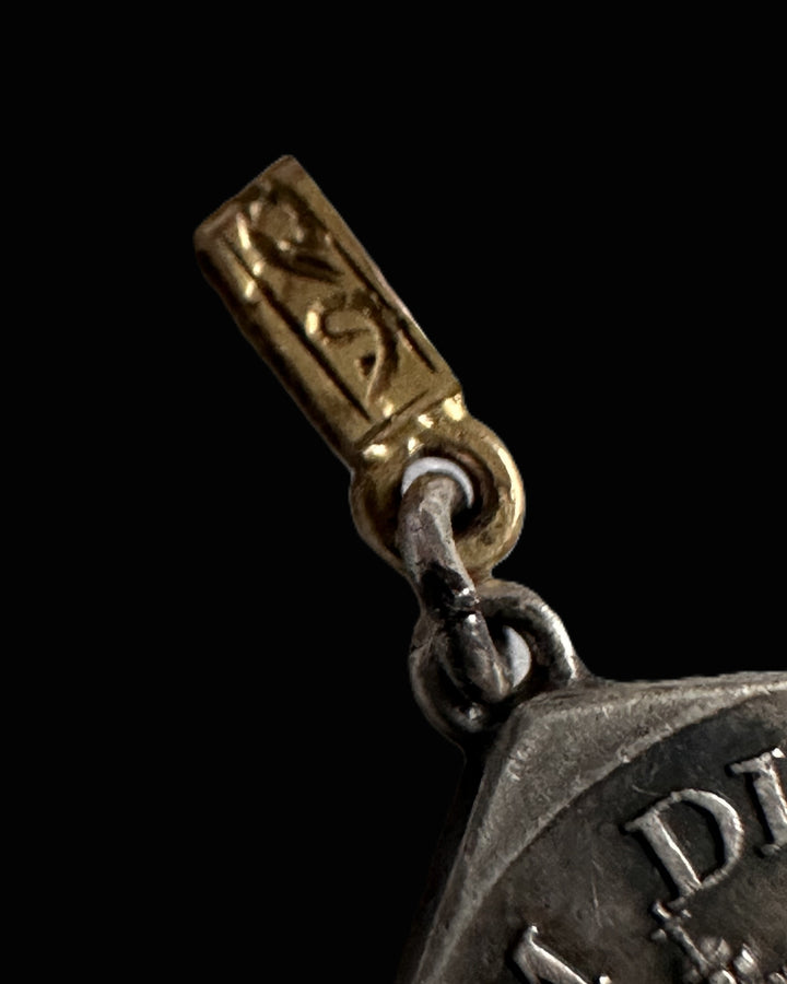 Condition: Very Good. Light, even toning with sharp detail to both sides and excellent preservation of relief. The gilt suspension bar remains intact and adds visual contrast.