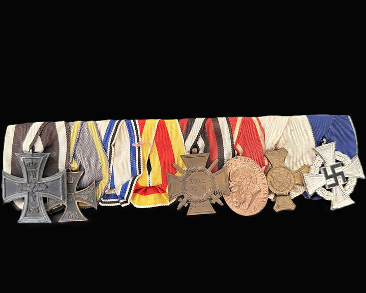 This medal bar reflects a soldier or officer’s career from Imperial Germany through the interwar period and into early World War II. The combination of awards and ribbons illustrates a service history rich in merit and recognition.