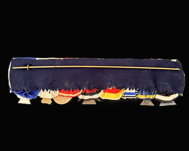 In addition to the six medals, two extra ribbons are included in the bar to represent additional honorary awards or non-mounted decorations. These ribbons are beautifully preserved, adding to the historical narrative of the bar.