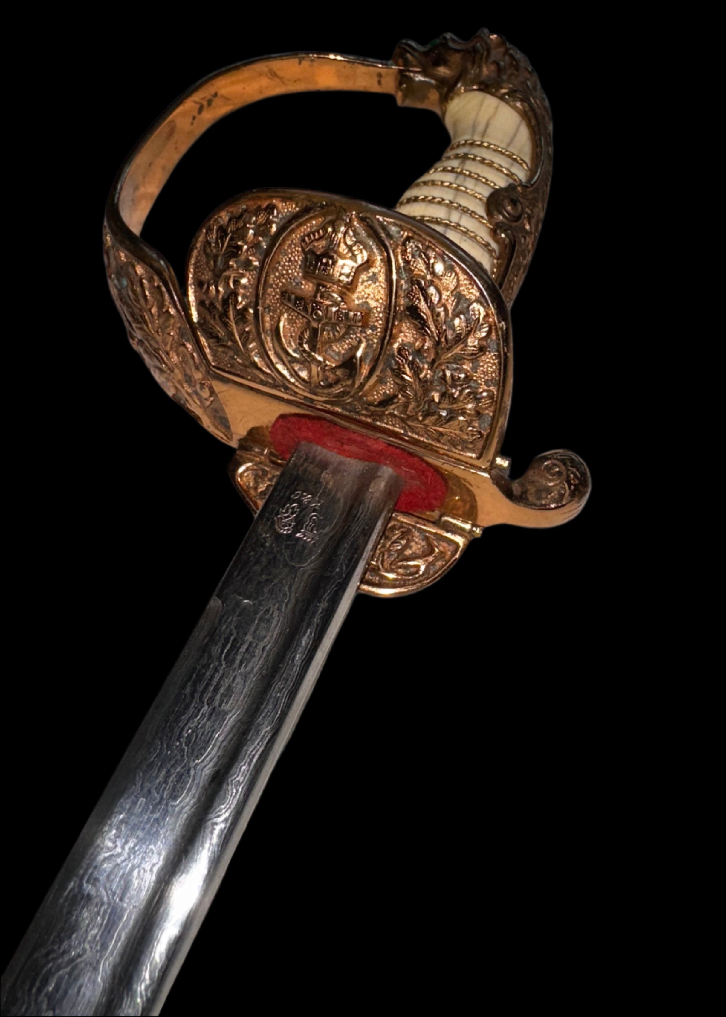 German Officer’s Sword – Damascus Blade, Gilded Hilt, Ivory Grip
