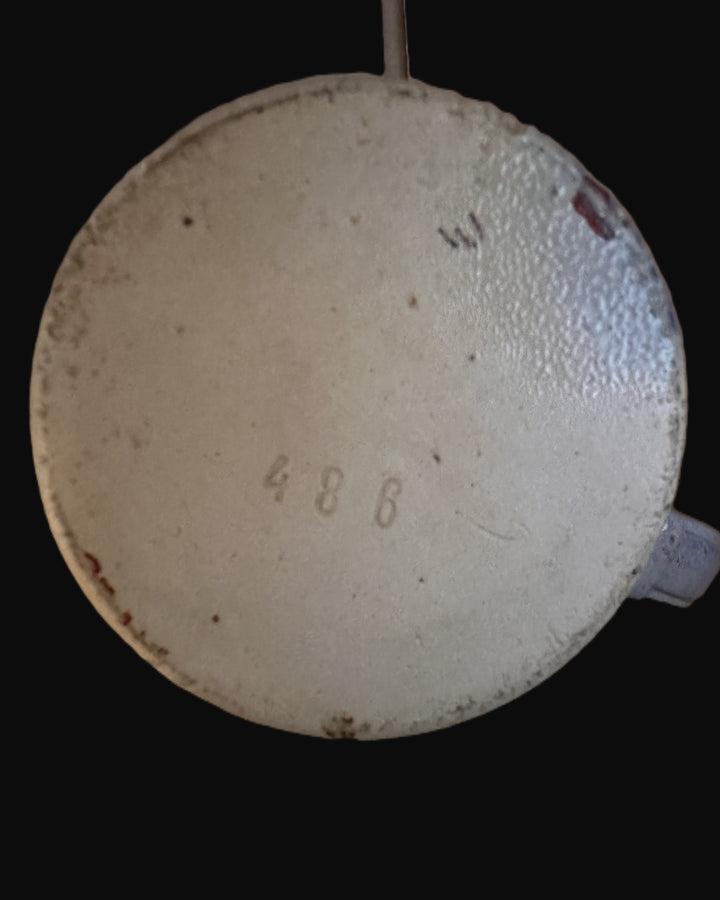 Steins like this were produced in the Westerwald region of Germany, which was renowned for its high-quality stoneware. The number 486 corresponds to a mold used by several major manufacturers between the late 1800s and early 1900s. The imagery and inscriptions speak to the cultural and nutritional value Germans placed on beer at the time.