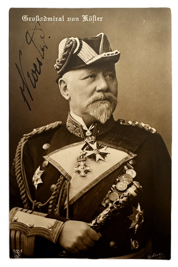We have a truly captivating piece of naval history. This postcard captures the imposing figure of Grosadmiral von Kester, a key figure in the Kaiserlich Marine. His stern expression and adorned uniform, complete with decorations and insignia, tell a story of duty and authority during a pivotal era in German history.