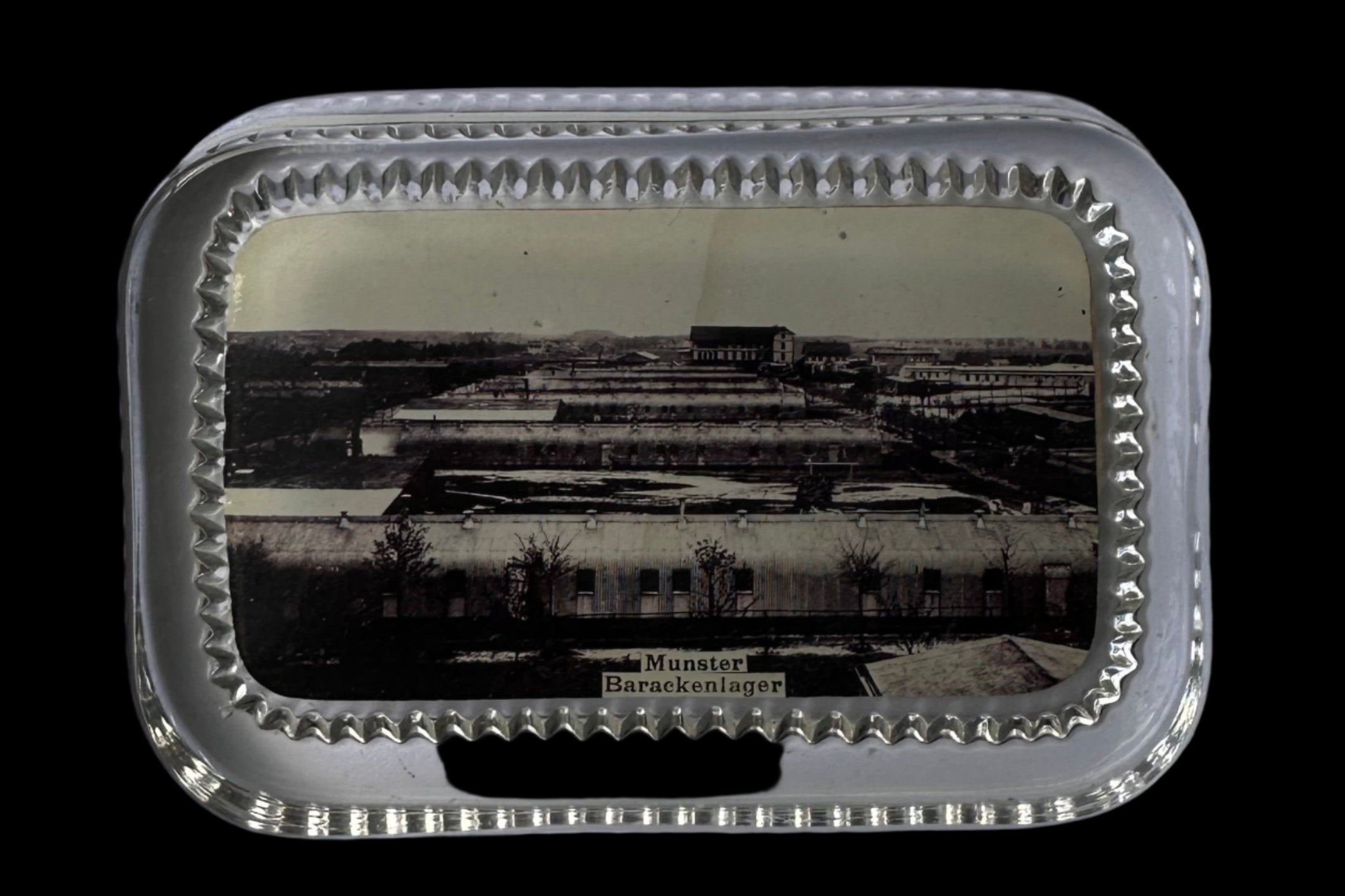 Glass souvenir paperweight featuring Munster Barackenlager military barracks