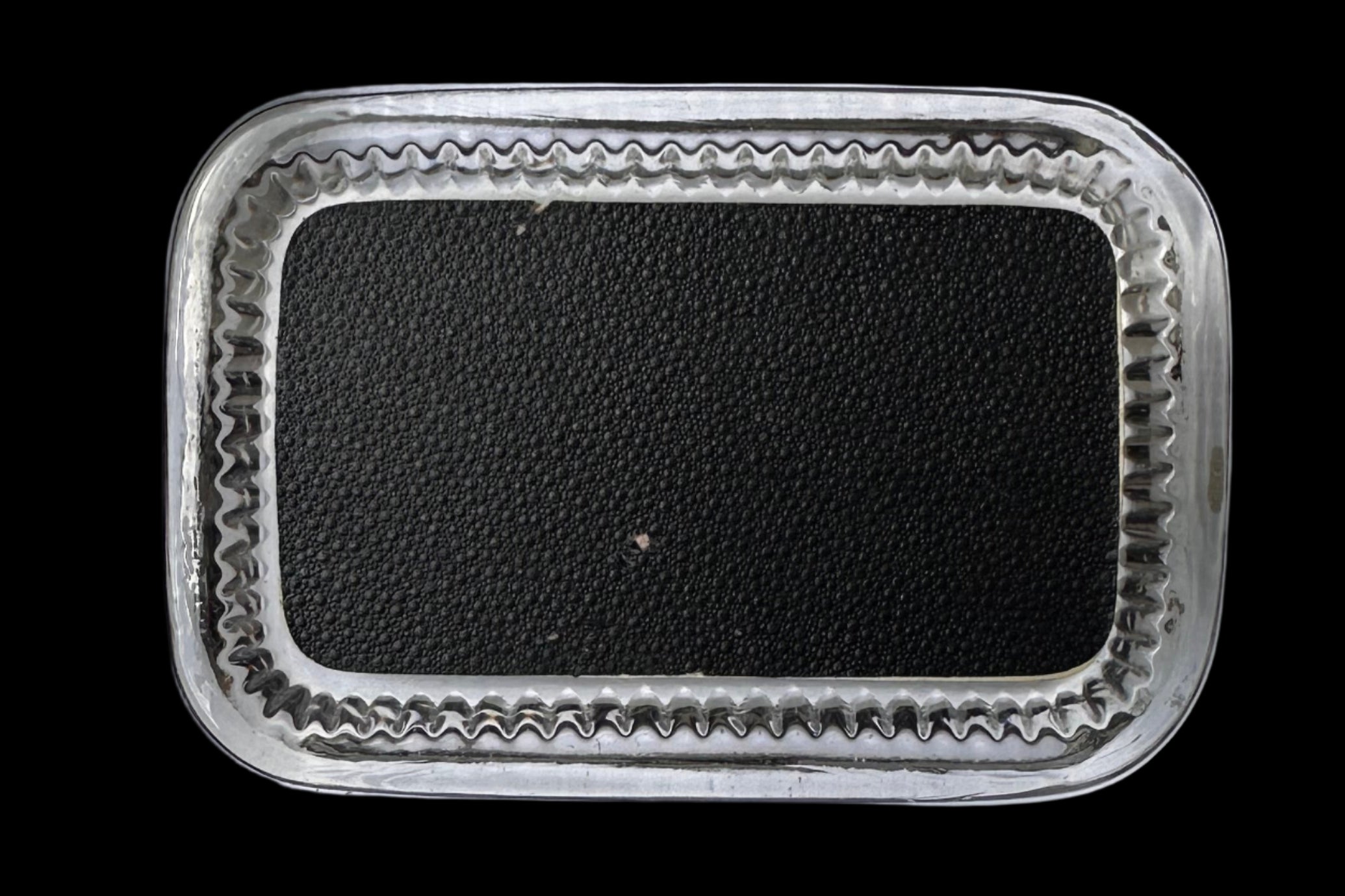 The image, rendered in sepia tones, is inset beneath the glass surface and framed by a faceted border of pressed crystal cuts that catch the light attractively from all angles. The reverse is finished in black pressed paperboard or felt, neatly intact and unmarked. The glass is free of cracks or chips and maintains excellent optical clarity.