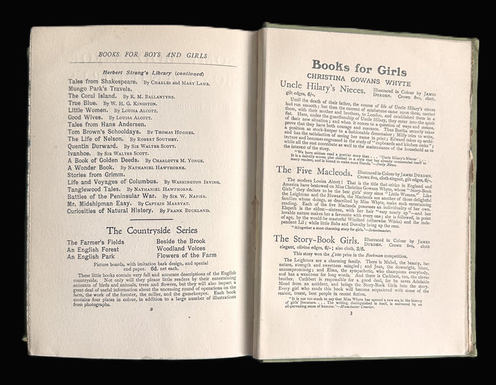 Physically, the book is complete and intact. The cloth boards show honest service wear, including surface scuffing, light fraying at the extremities, and age-related rubbing consistent with a 110-year-old volume. The spine remains firm and legible. The binding is sound, with no loose pages observed. Internally, the pages are clean overall, with expected age toning. Color plates remain vibrant, and text pages are crisp and readable. No modern repairs or restoration are evident.