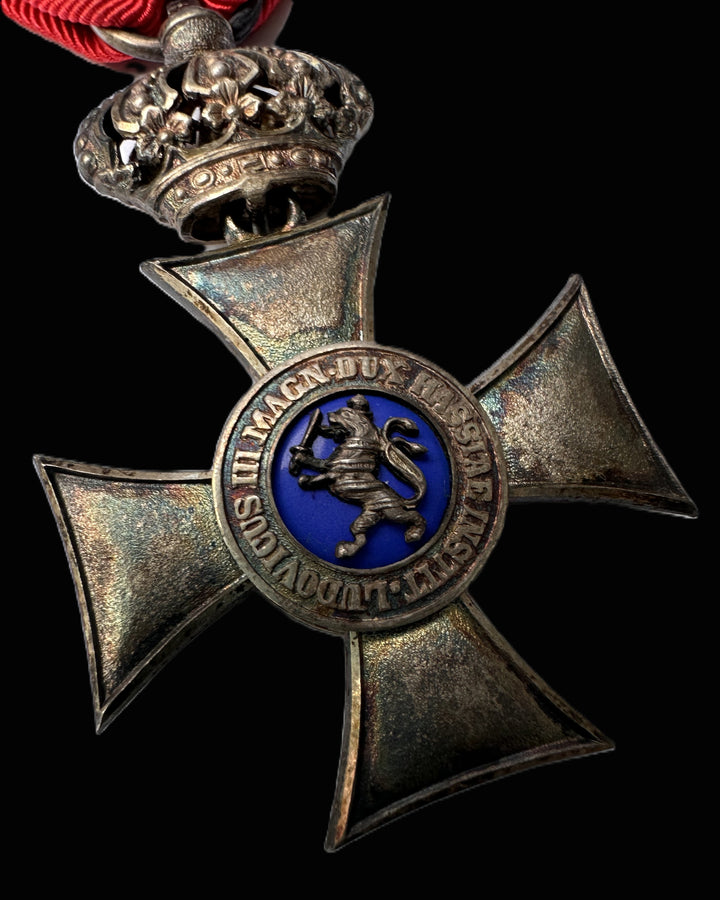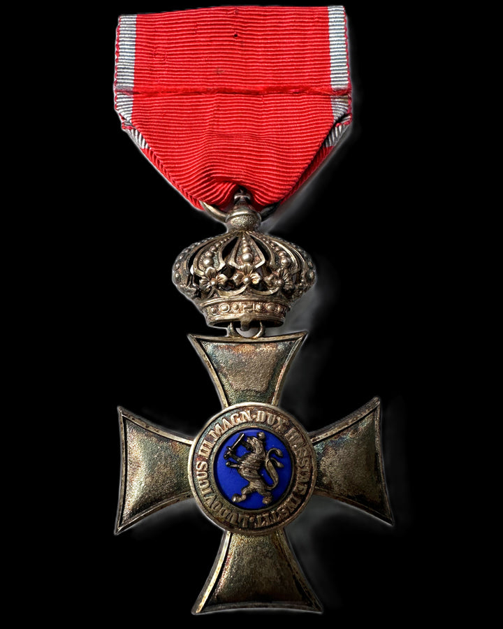 The cross features a beautifully preserved crowned bust of Grand Duke Ludwig, surrounded by the Latin inscription: “VIRTUTI ET FIDELITER” ("For Virtue and Loyalty"). The reverse medallion shows the lion of Hesse within the order’s name and title: “LUDOVICUS III MAGN. DUX HASSIAE PR. HESS.”