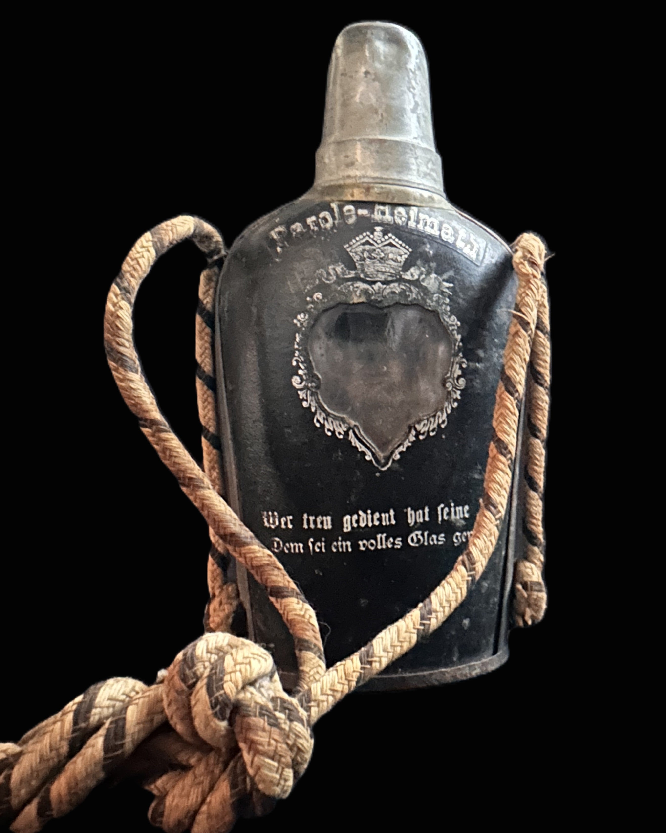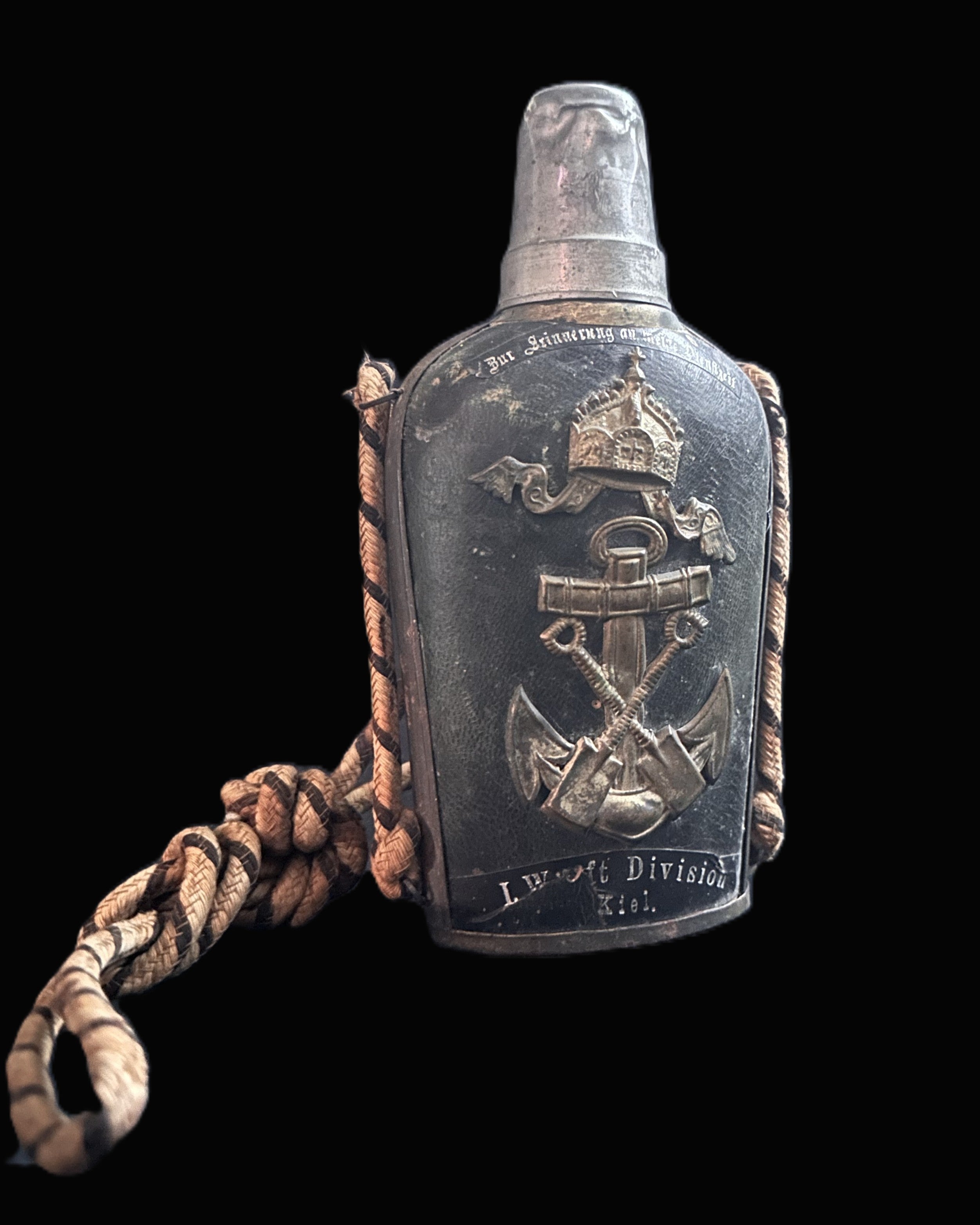 Imperial German Naval Souvenir Flask – 1. Werft Division, Kiel – “Parole Heimath”