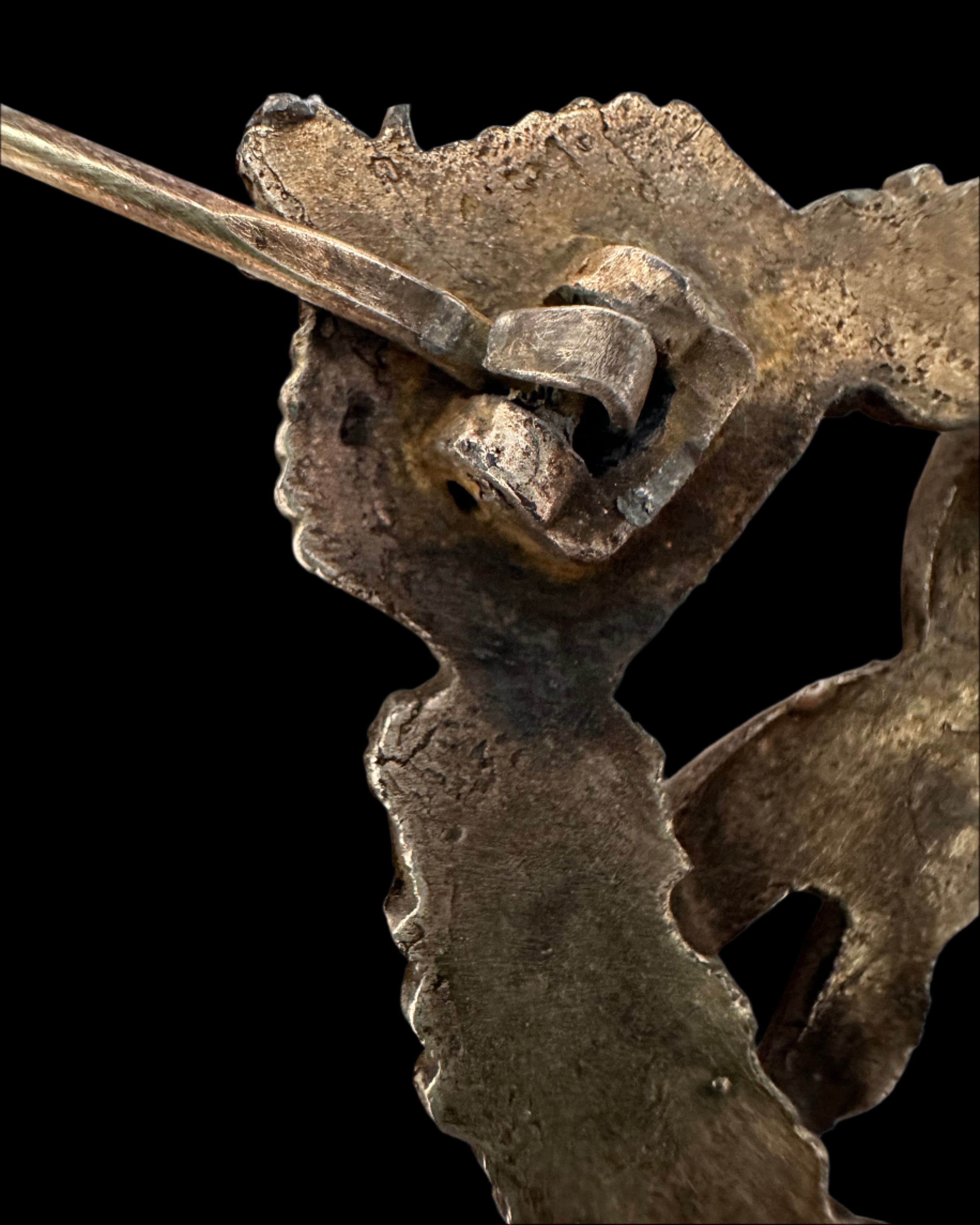 Condition: Very good. The obverse exhibits uniform age toning, with some silver loss to high points. The reverse has natural patination and no visible hallmark. The hinge and catch system is fully intact, and the pin closes securely. No repairs noted. Moderate surface wear consistent with age but structurally excellent.