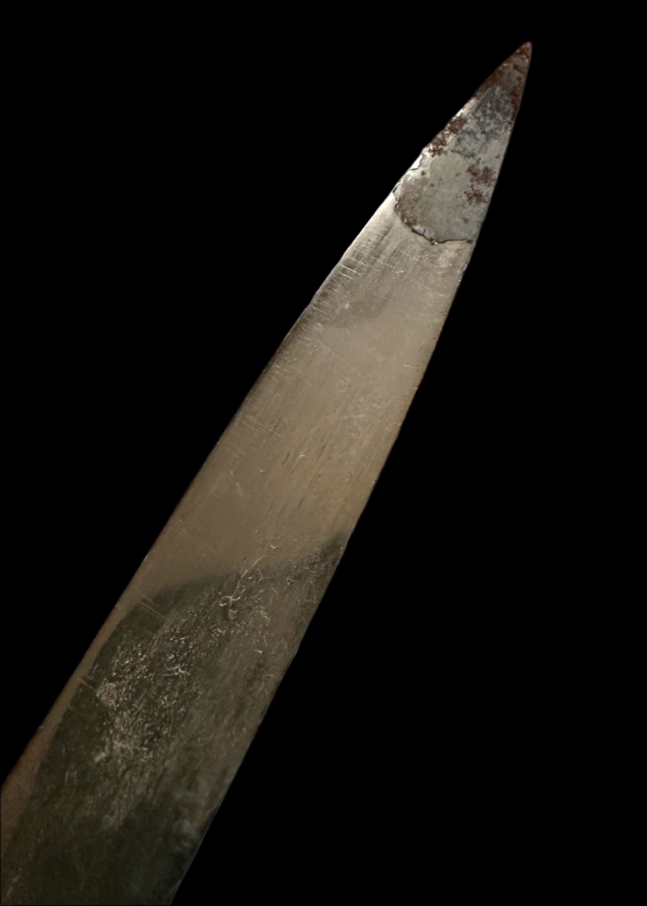 Blade: Clean and straight but exhibits oxidation and pitting near the tip.