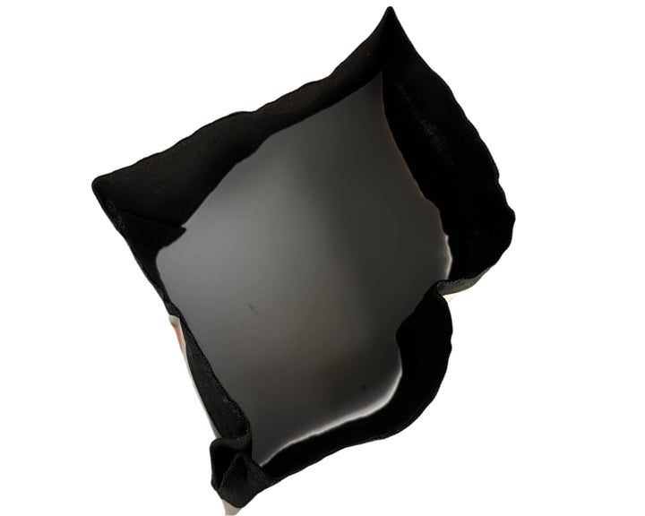The armband is in very good condition, made of high-sheen silk with vibrant, unfaded colors. There are minor creases and one small stitch seam on the lower black edge, but no tears or structural damage. The inside lining is intact and appears to be a black cotton blend. No markings are present, but the quality of stitching and fabric is consistent with WWI-era patriotic wear.