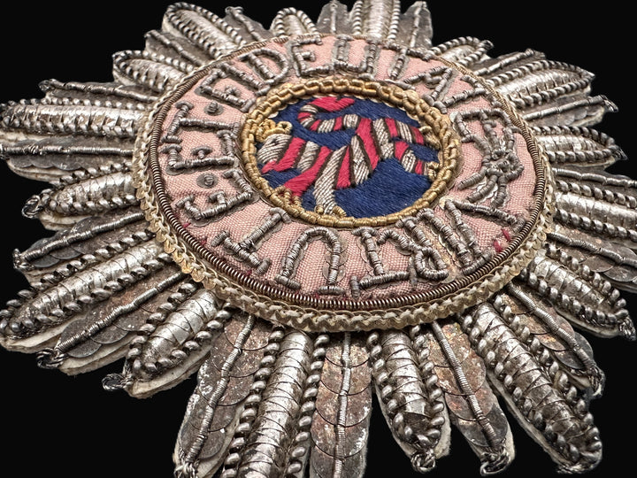This breast star likely belonged to a noble family or member of an esteemed order, such as the Saxon House Order of Albrecht the Bear or a similar Germanic chivalric order. These symbols were proudly worn at formal occasions to signify rank, loyalty, and association with a noble lineage or sovereign institution.