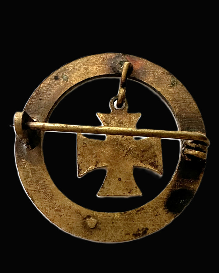 The Iron Cross was one of Imperial Germany's most recognized symbols of valor. Introduced in 1813 by King Friedrich Wilhelm III of Prussia, it was later awarded during the Franco-Prussian War and World War I. This specific badge, likely designed for veterans or as a patriotic accessory, served as a wearable reminder of service and dedication during the Great War.