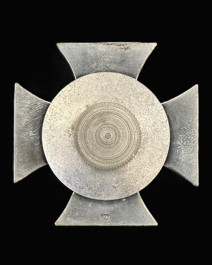 This Iron Cross bears all the hallmarks of an original piece from World War I, including the correct dimensions, materials, and maker’s stamp. The "800" silver marking confirms its production in the correct era using the appropriate materials.
