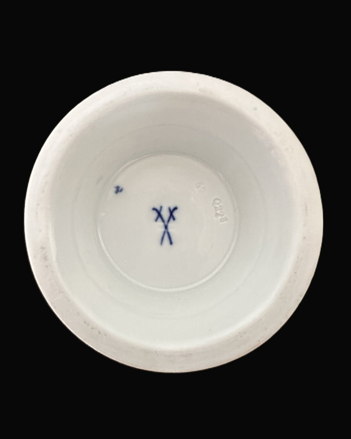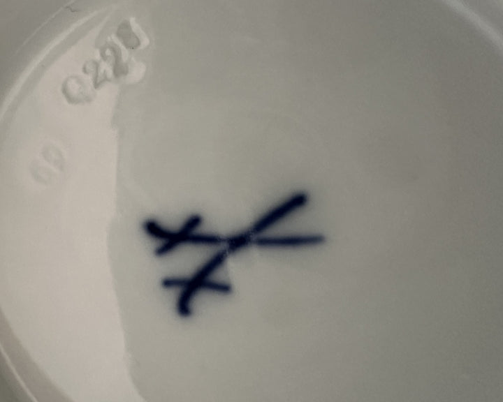 - Base: The hallmark, featuring the iconic crossed swords in blue, is well-preserved, alongside impressed production numbers. The base shows minor scuffing consistent with age and careful handling.