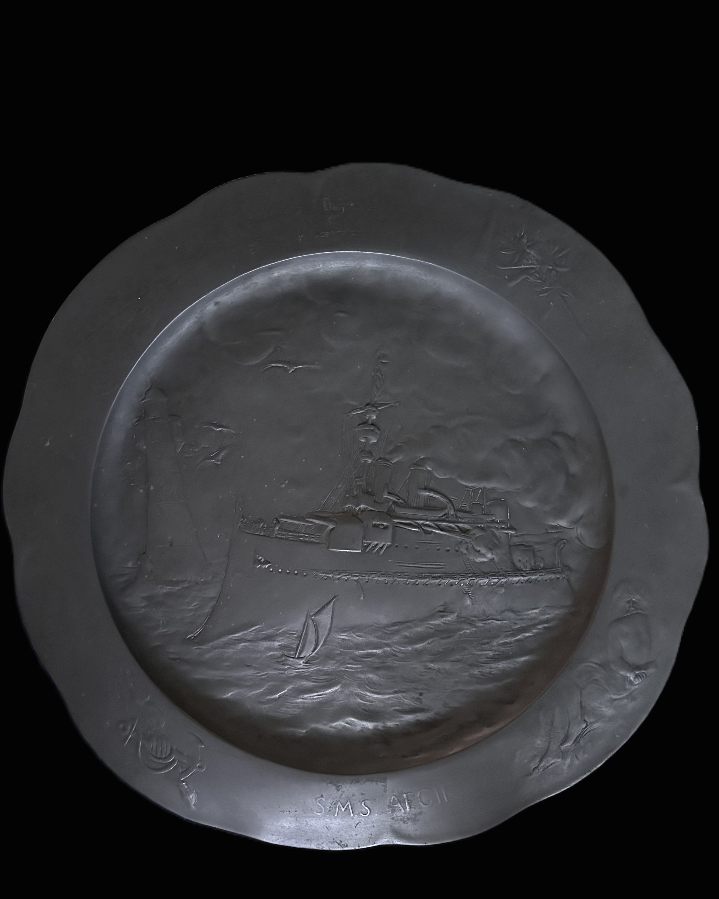 Imperial German Navy Commemorative Pewter Plate – SMS Ägir Coastal Defense Ship