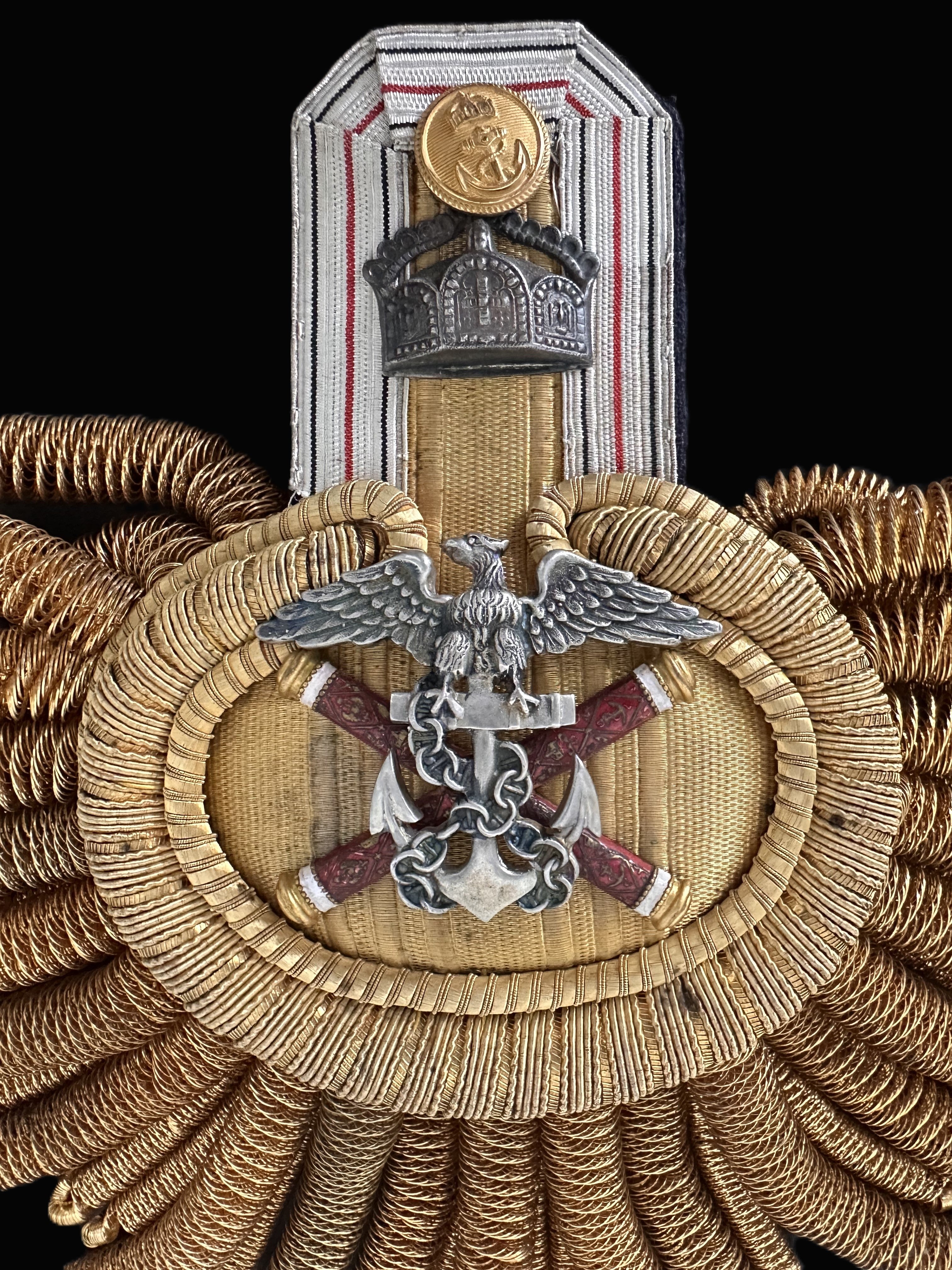 - Magnificent gold bullion epaulettes, denoting the highest naval rank in the Kaiserliche Marine.