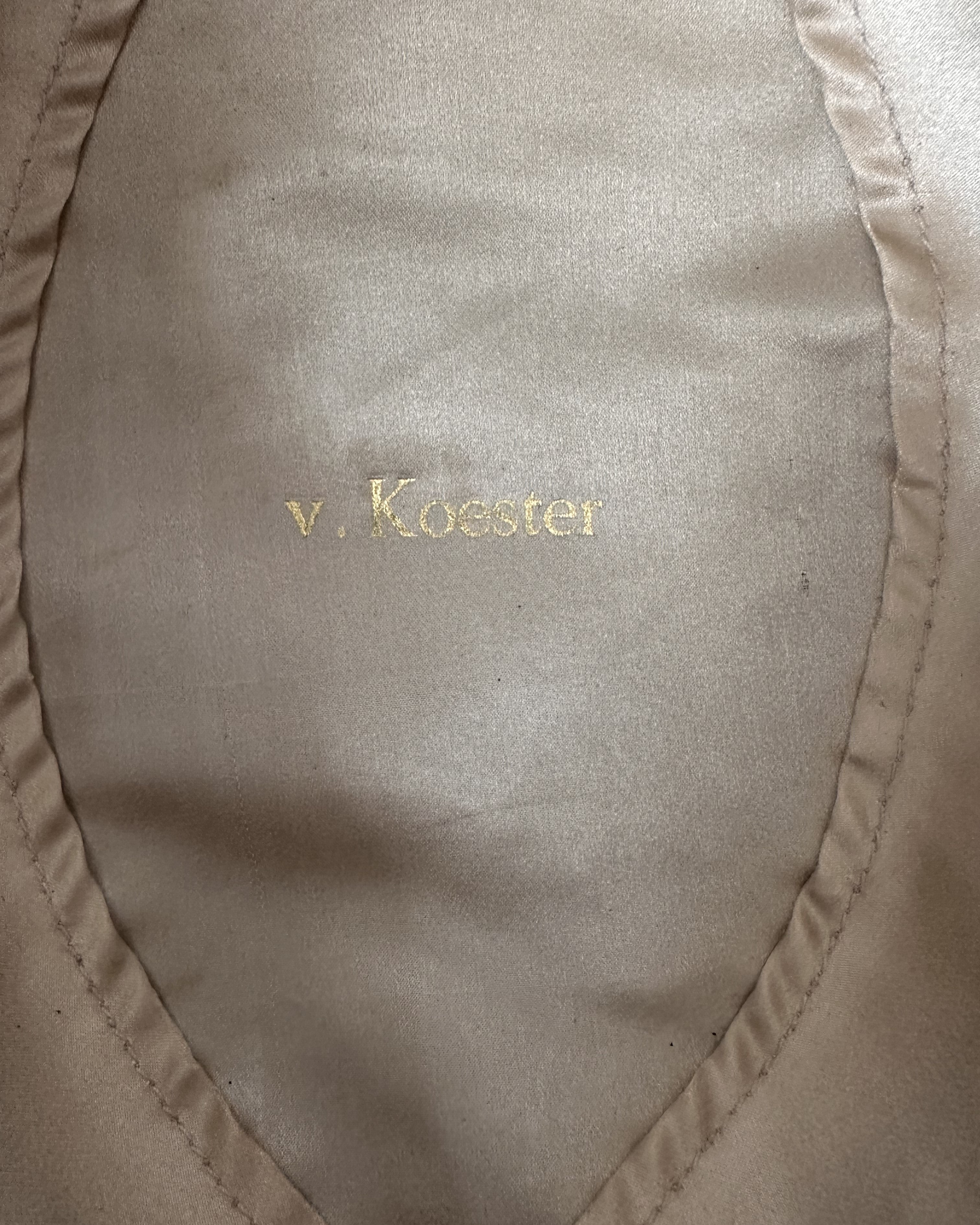 - Interior lined in fine silk, with “v. Koester” monogrammed in gold lettering, confirming personal ownership.