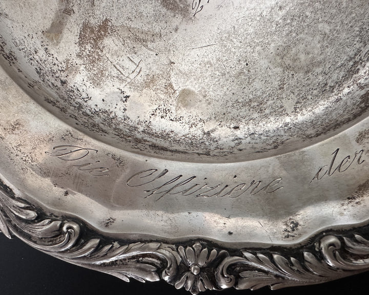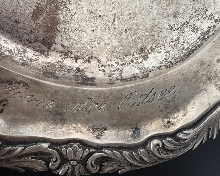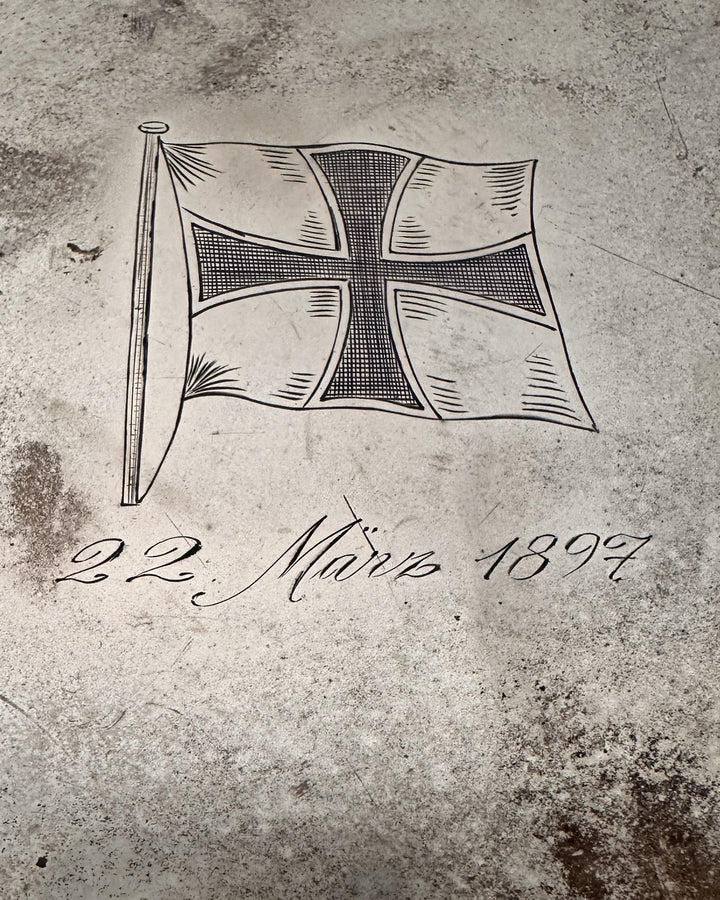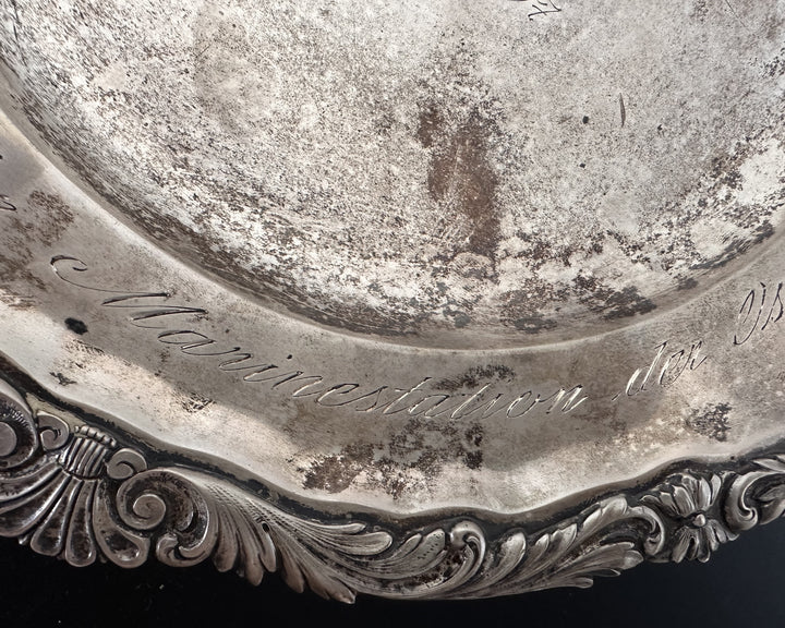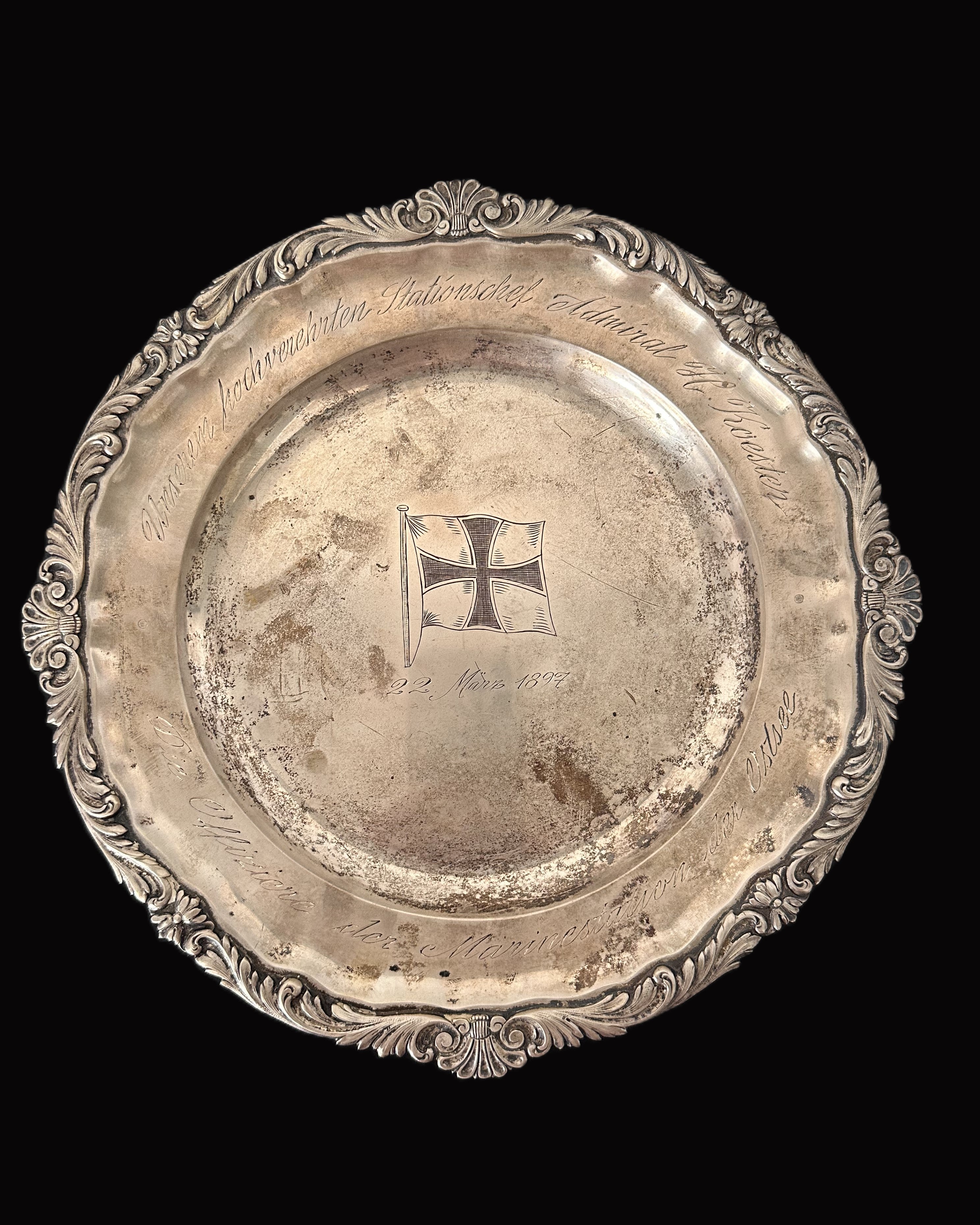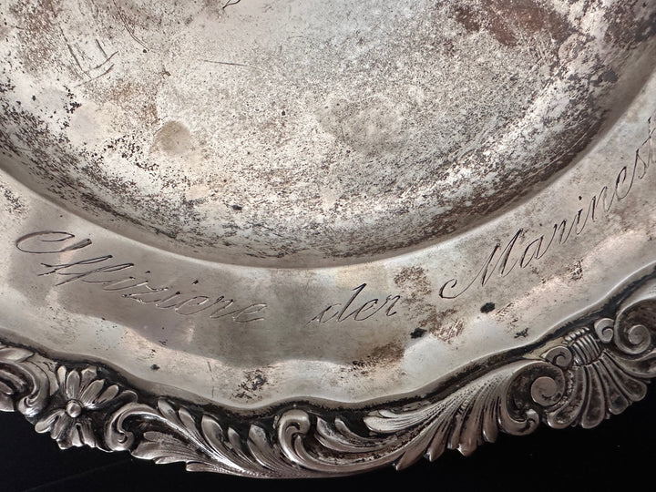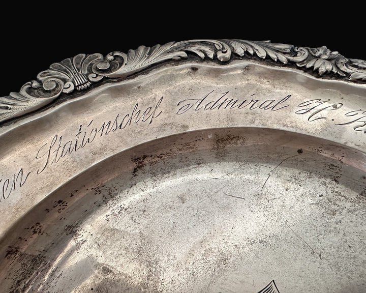 - An ornate silver presentation plate engraved with the Kaiserliche Marine (Imperial Navy) flag at its center.