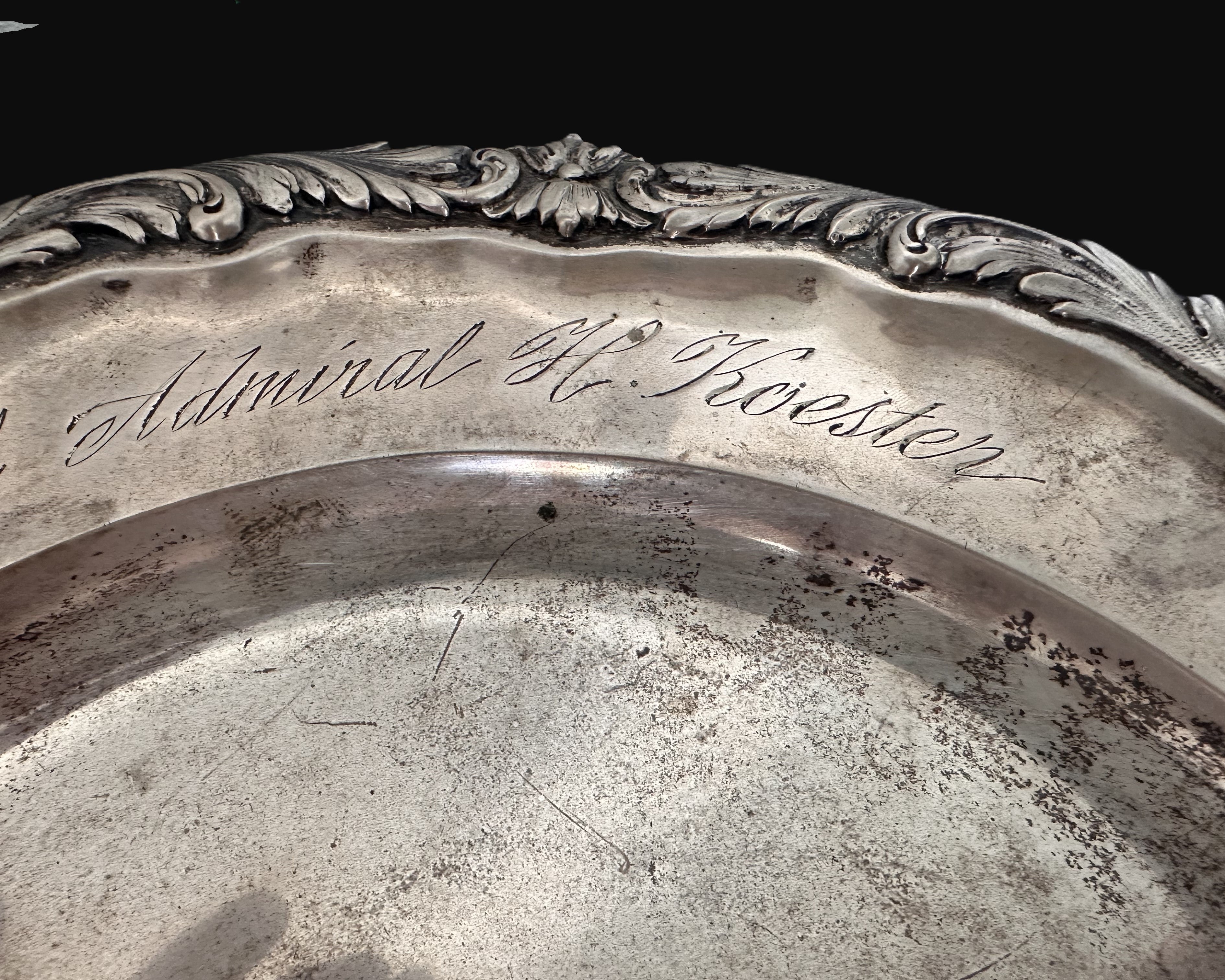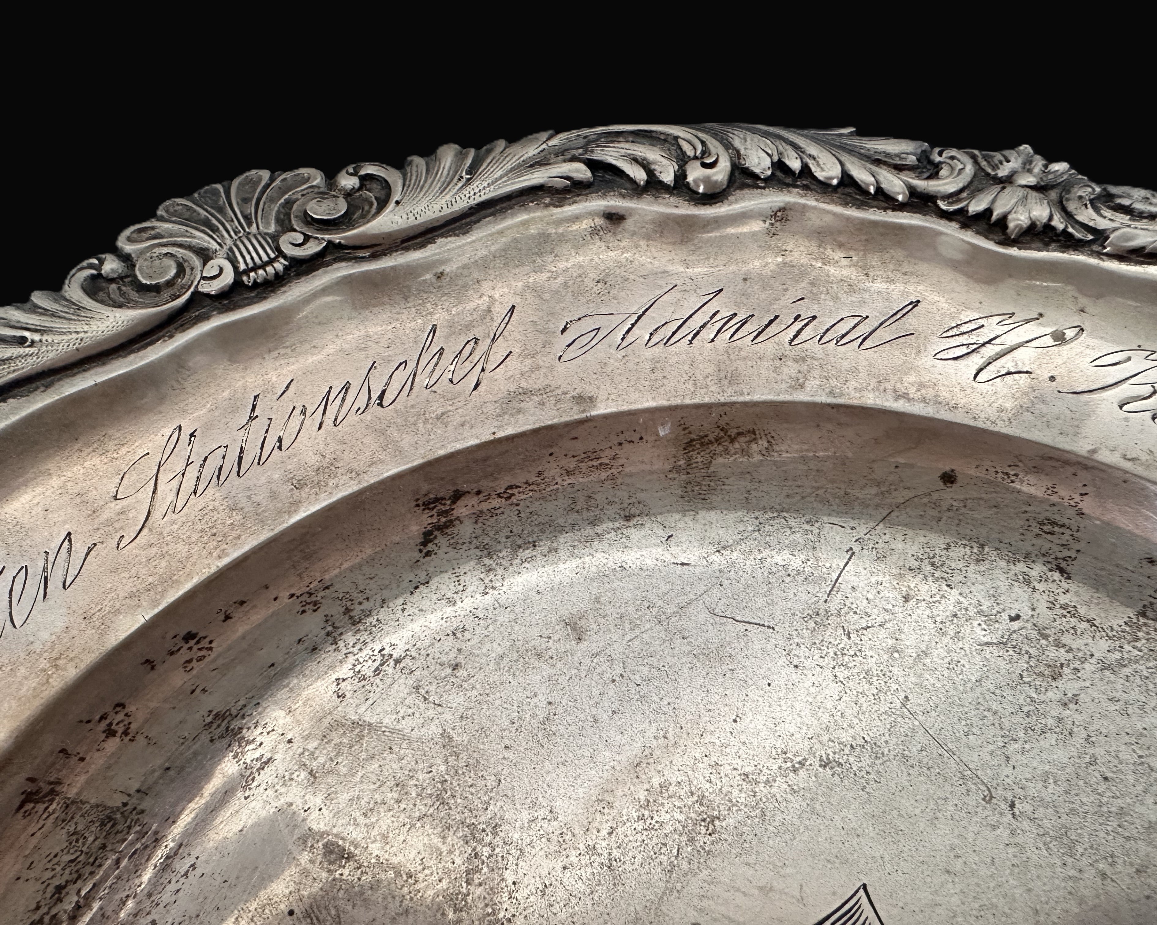 - The silver plate’s date and inscription confirm that this was a gift of recognition from the officers under his command in the Baltic Naval Station.