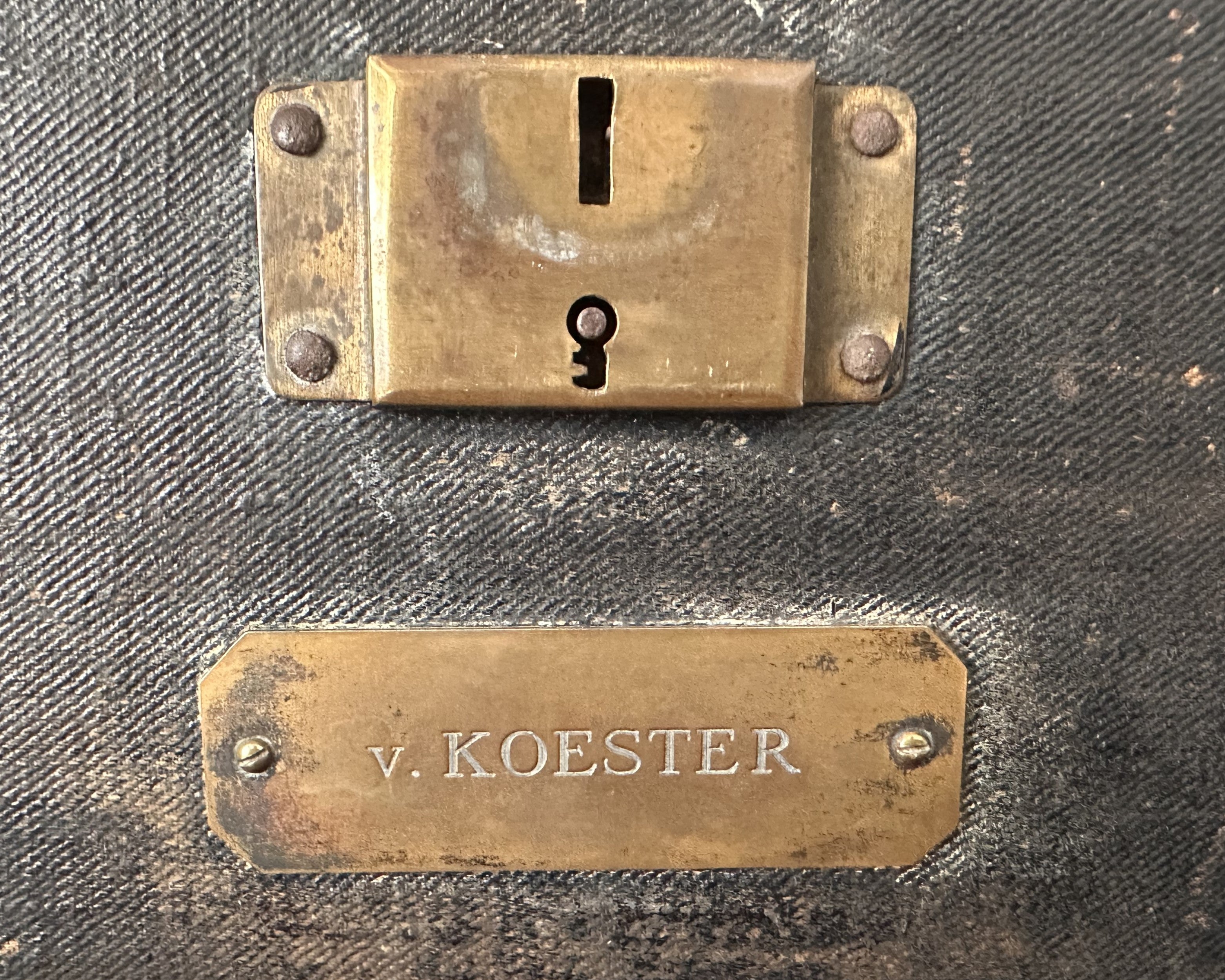 - Brass nameplate engraved with "V. KOESTER", confirming its ownership.