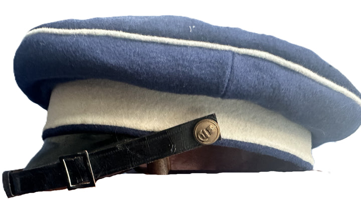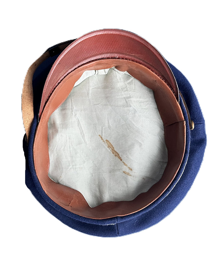 - Condition: The cap is in excellent condition for its age, showing light wear but no significant damage. The leather chinstrap remains supple, and the interior is in good condition with only minor signs of wear on the liner.
